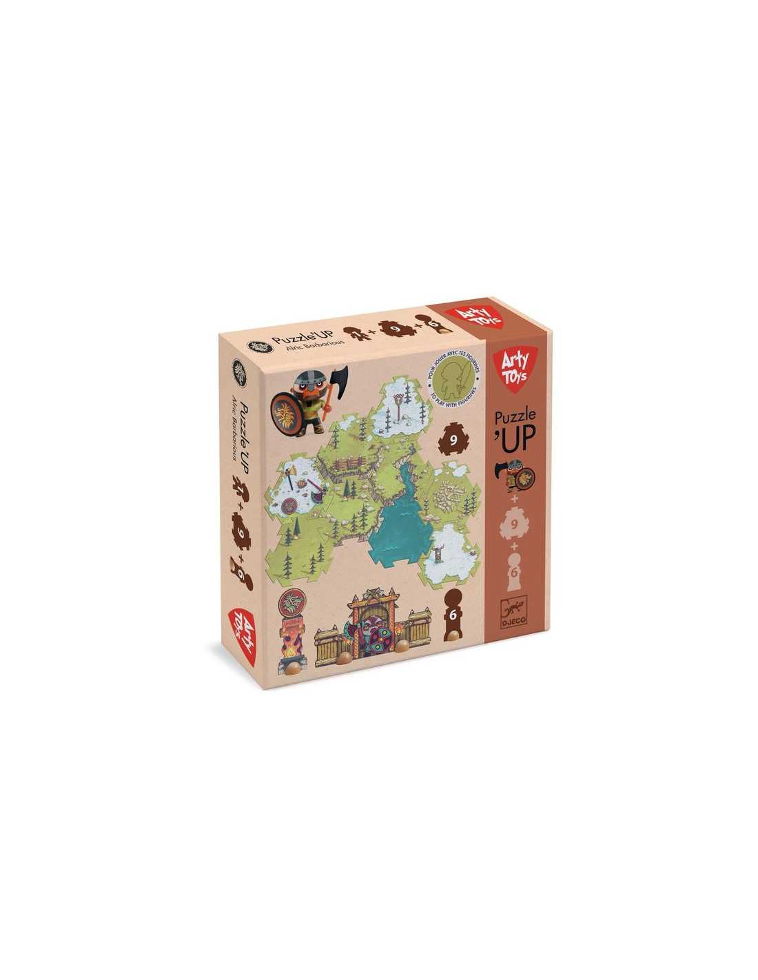 Découvrez le Puzzl'Up Alric Barbarious de la collection Arty Toys de Djeco, un puzzle de sol complété par des éléments de décors pour jouer, créer une bataille géante et se raconter des histoires à l’infini. Un coffret à offrir en cadeau aux enfants dès 4 ans.