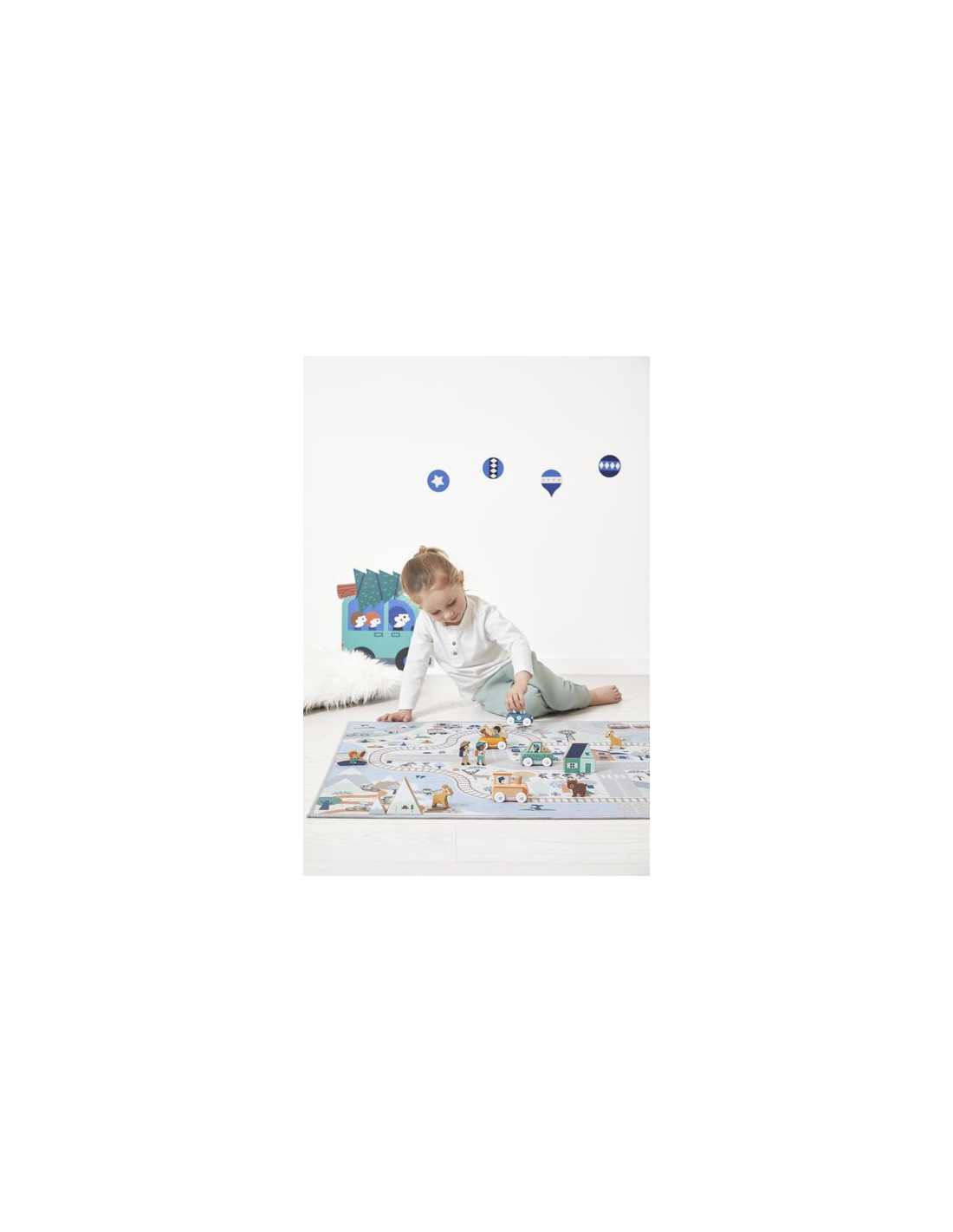Avec sa longue route sinueuse traversant différents paysages, ce tapis de voiture invite les enfants à imaginer de belles histoires. Le tapis propose également une activité de "Cherche et trouve", idéale pour stimuler la concentration et l'interaction. Votre enfant s'amusera à observer les animaux, à compter les éléments, à reconnaitre les formes... Autant de saynètes qui développent son vocabulaire.