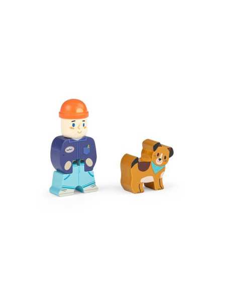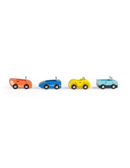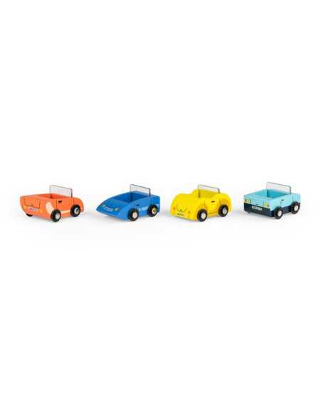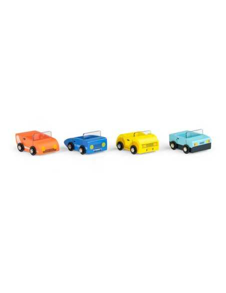 Grâce au chauffeur accompagné de son petit chien, les 4 jolies voitures arriveront à bon port à bord de ce magnifique camion en bois ! Des heures de jeu en perspective.