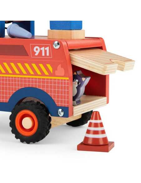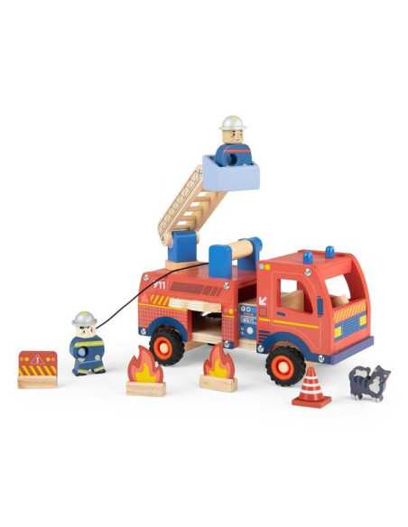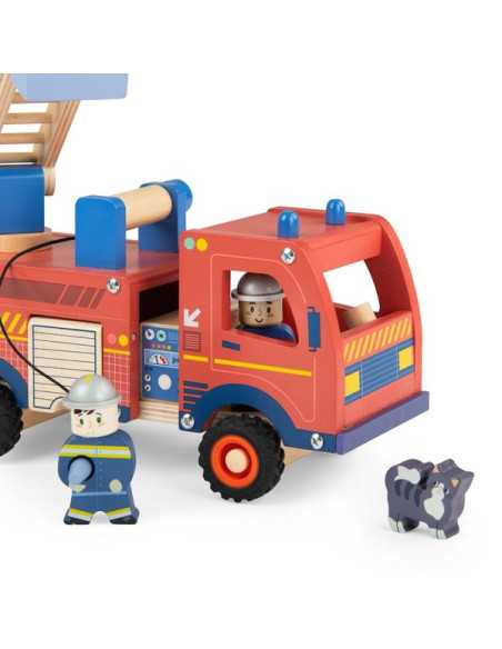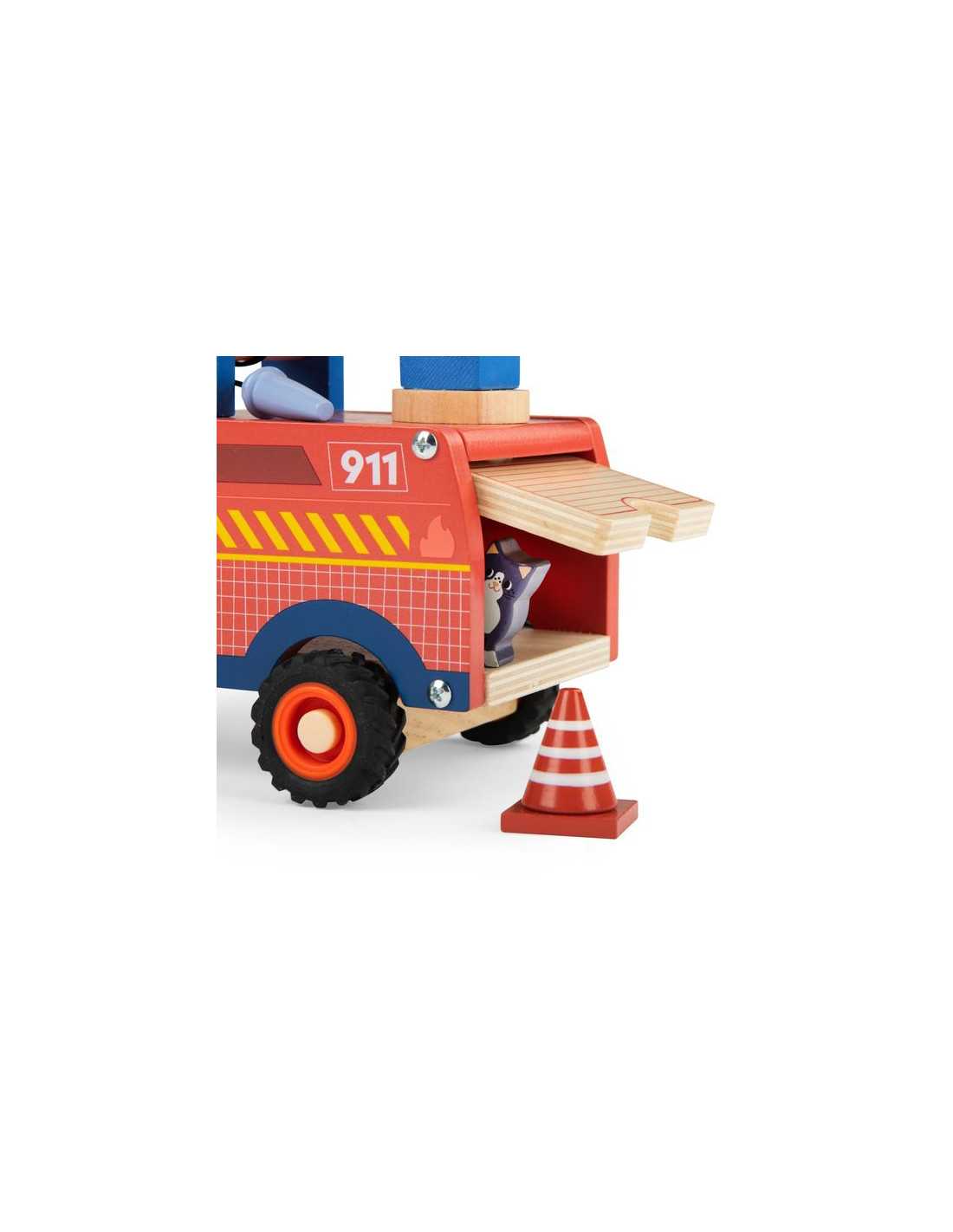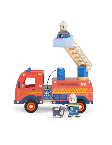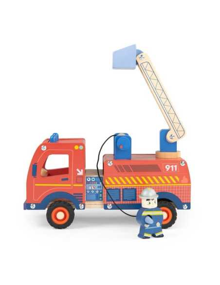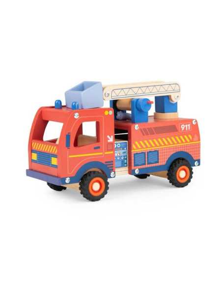 Lancez la sirène, les pompiers partent en intervention avec ce magnifique camion en bois ! Grâce à la grande échelle, la lance à eau et aux petits accessoires, les petits s'inventeront des histoires inoubliables pour des heures de jeu en perspective.