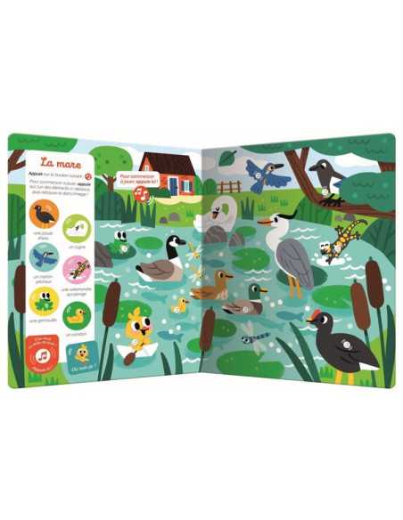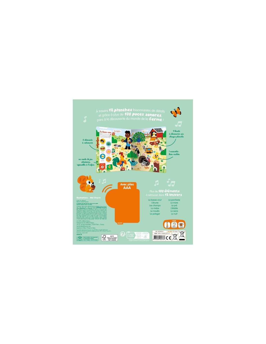 Votre enfant va explorer le monde de la ferme à travers 12 planches foisonnantes de détails et près de 100 sons à découvrir !