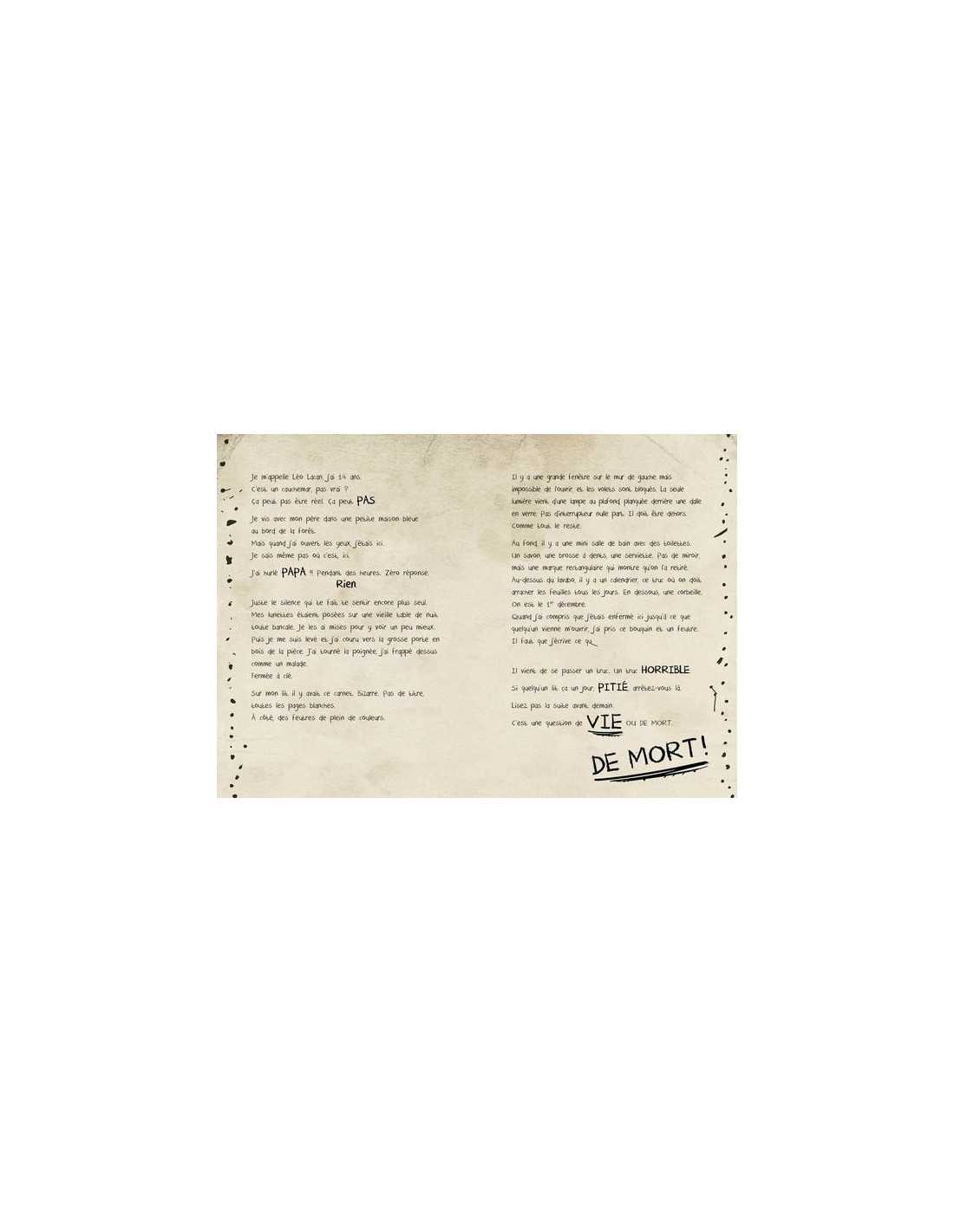 Que feriez-vous si vous trouviez un roman maudit en bas de chez vous ? Un roman qui raconte l'histoire de Léo, 15 ans, kidnappé... un roman qui ressemble de plus en plus à un vrai journal. Que feriez-vous si vous vous réveilliez chaque matin, et réalisiez que vous revivez la même journée encore, et encore, et encore ? Une journée pour découvrir qui est vraiment Léo. Une journée pour sauver son frère. Une journée pour sauver tous les autres. Une journée pour sauver sa propre vie. Une journée pour mourir.