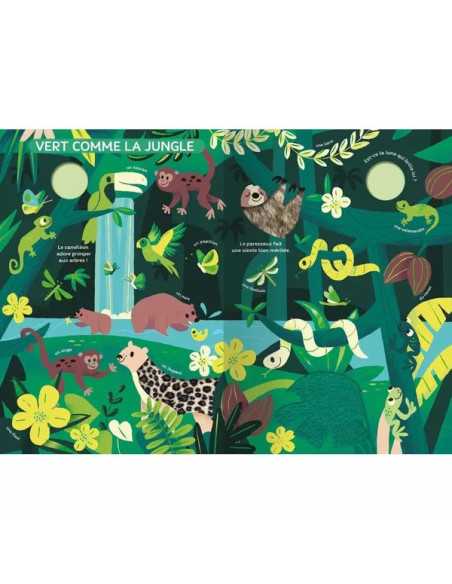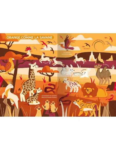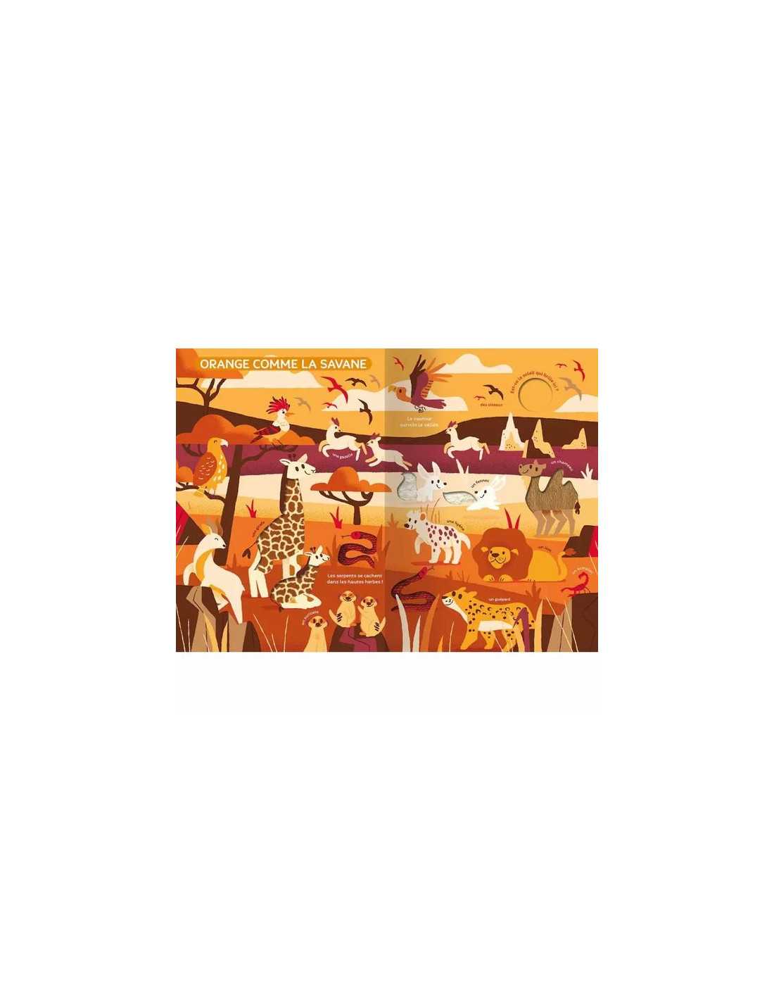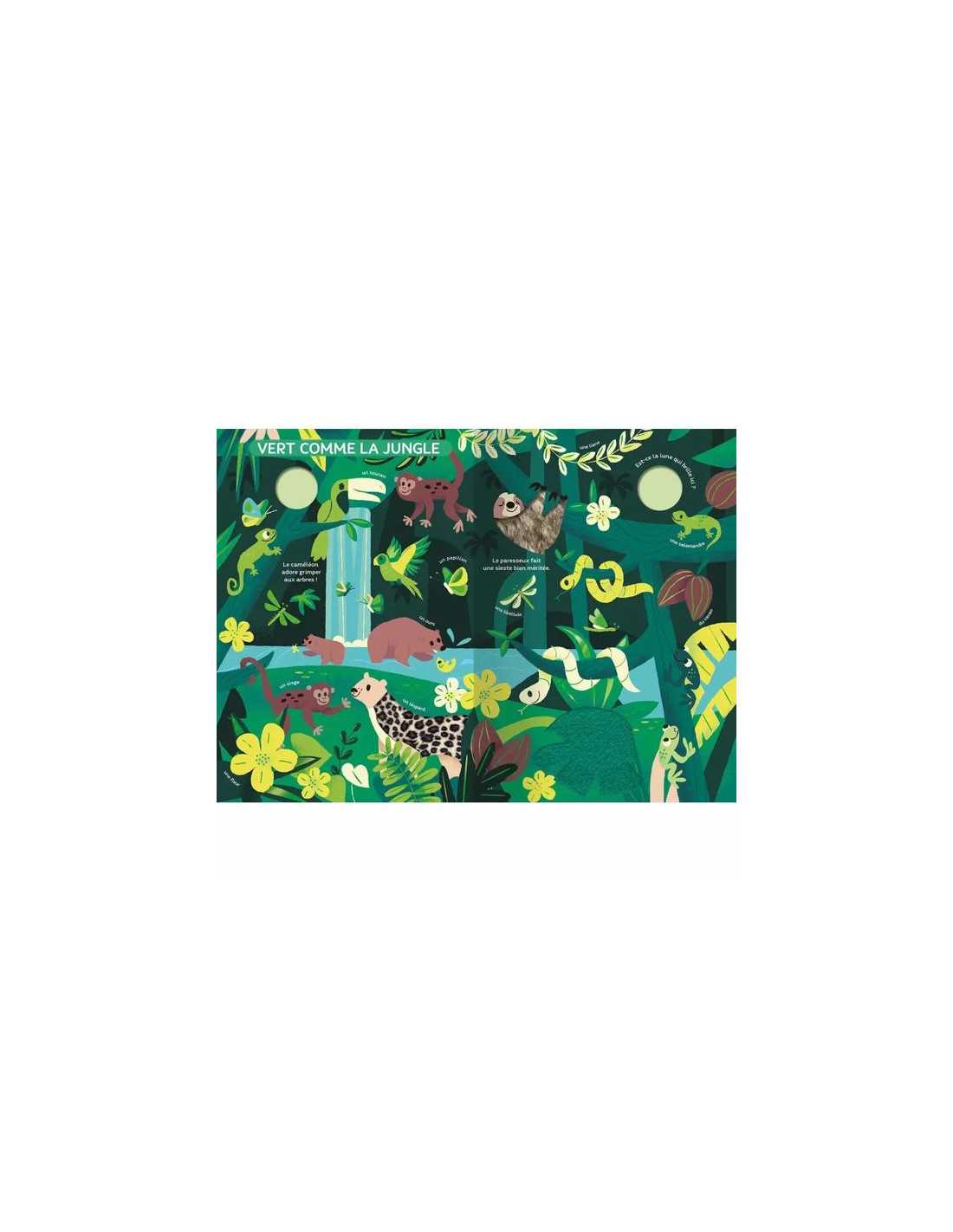 Un magnifique livre au format géant avec plus de 20 matières à toucher au fil des pages et qui peut se transformer en tapis d’éveil. Le tout-petit découvre même un miroir à la fin ! Ce livre géant aborde le thème incontournable des couleurs : Bleu comme l'océan, Orange comme la savane, Vert comme la jungle et Violet comme la ville.