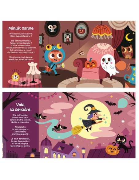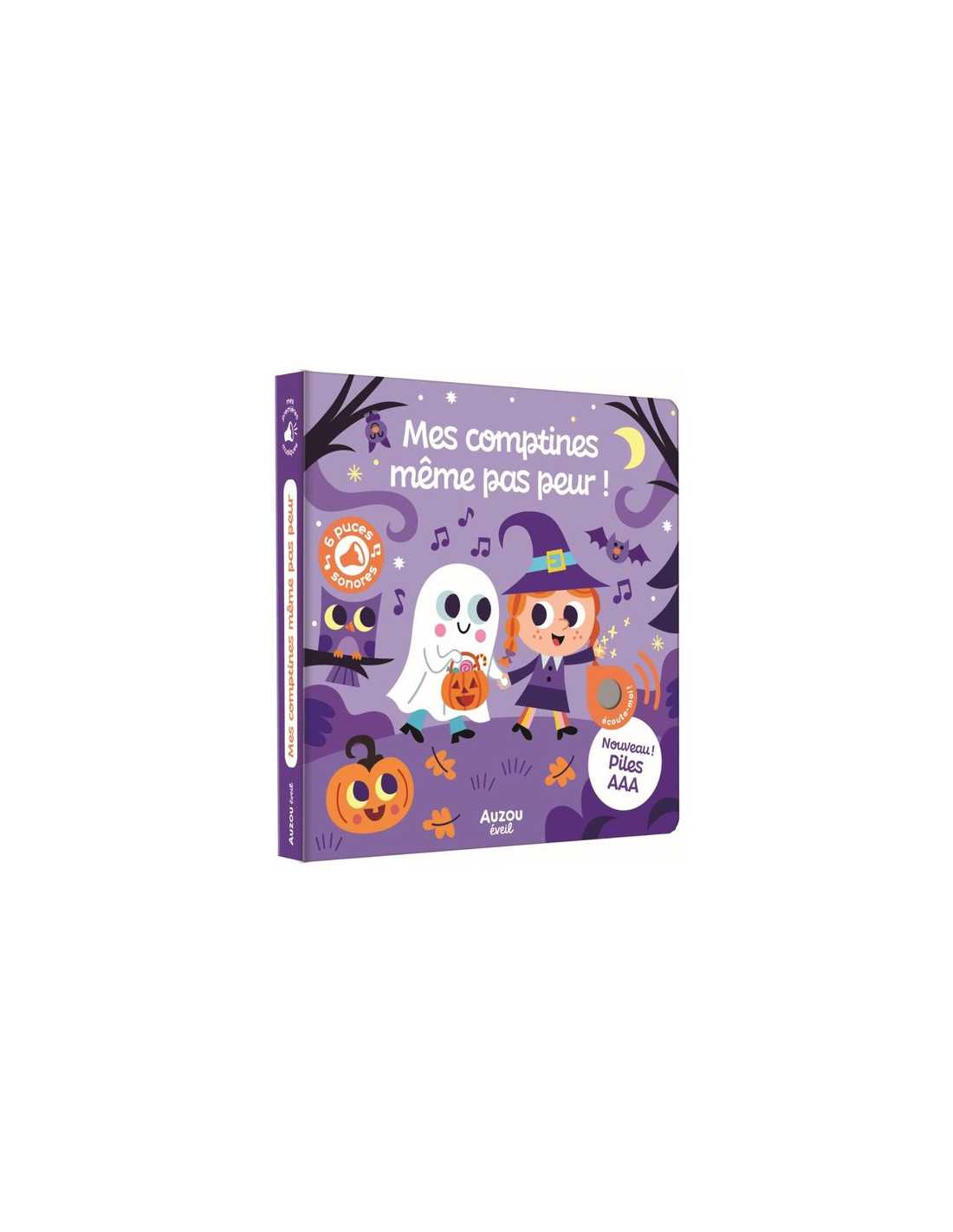 Découvrez le livre sonore Mes comptines même pas peur de Auzou, un livre sonore de 12 pages pour les enfants à partir de 1 an, qui regroupe 6 comptines courtes et faciles à mémoriser pour s'endormir au rythme des plus belles comptines sur le thème d'Halloween.