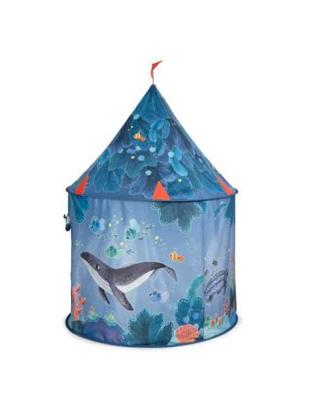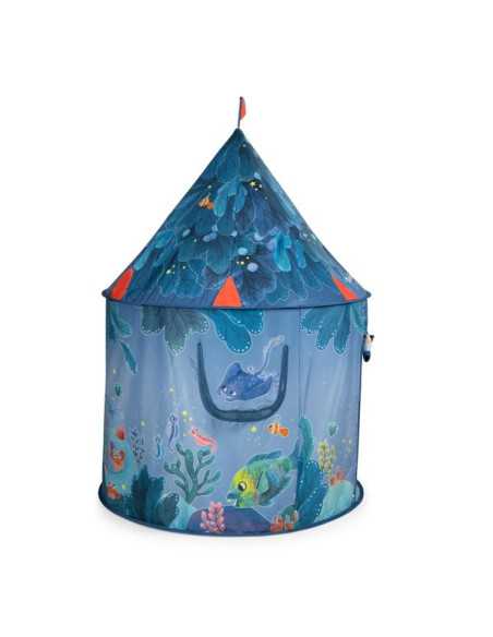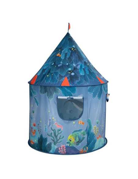Avec sa porte et sa fenêtre, elle sera le refuge préféré des enfants pour jouer à cache cache avec les poissons. Facile à monter, elle est accompagnée d'un sac zip pour la transporter.