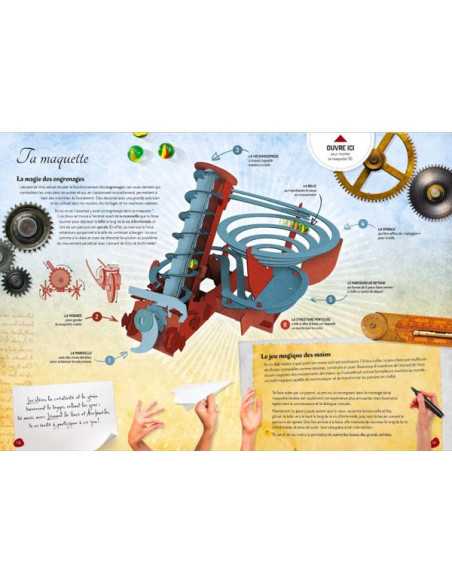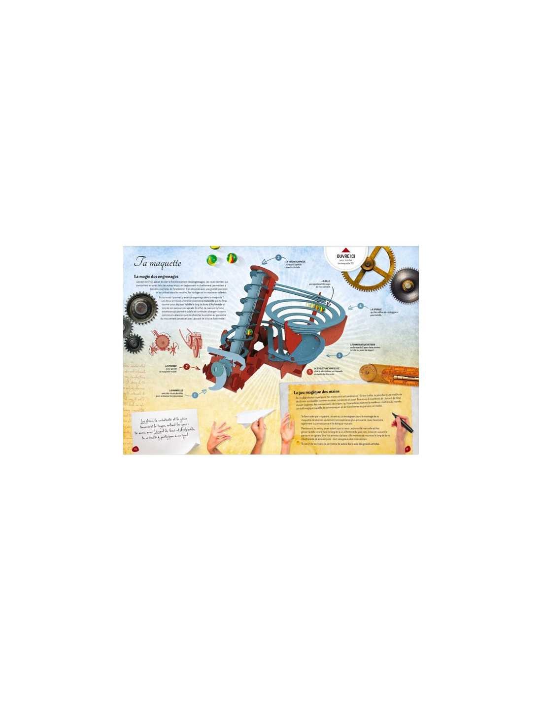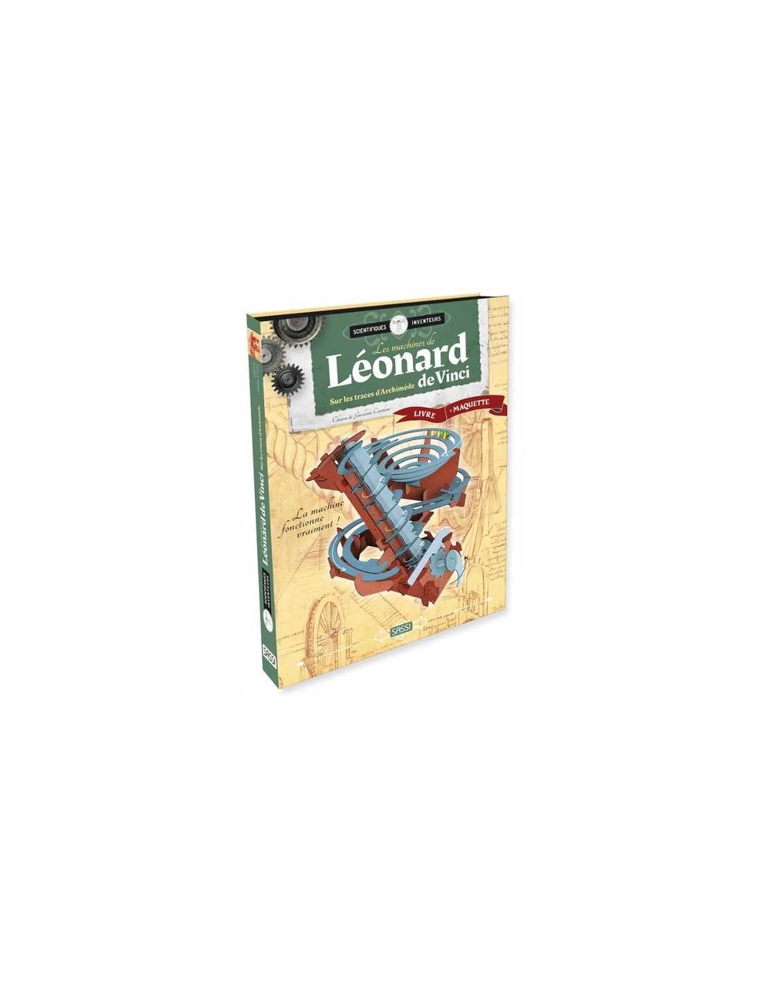 Découvrez les machines de Léonard de Vinci Sur les traces d'Archimède de Sassi, un coffret comprenant un livre de 14 pages pour découvrir l'histoire des machines de Léonard de Vinci et une maquette 3D à construire.