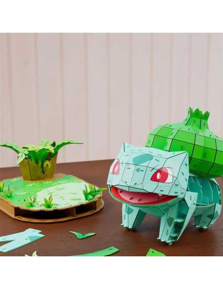 Avec ses 195 pièces en carton à encastrer sans colle ni outils, cette maquette vous invite à reconstituer le célèbre Pokémon de type Plante de Kanto, au milieu de la jungle.
