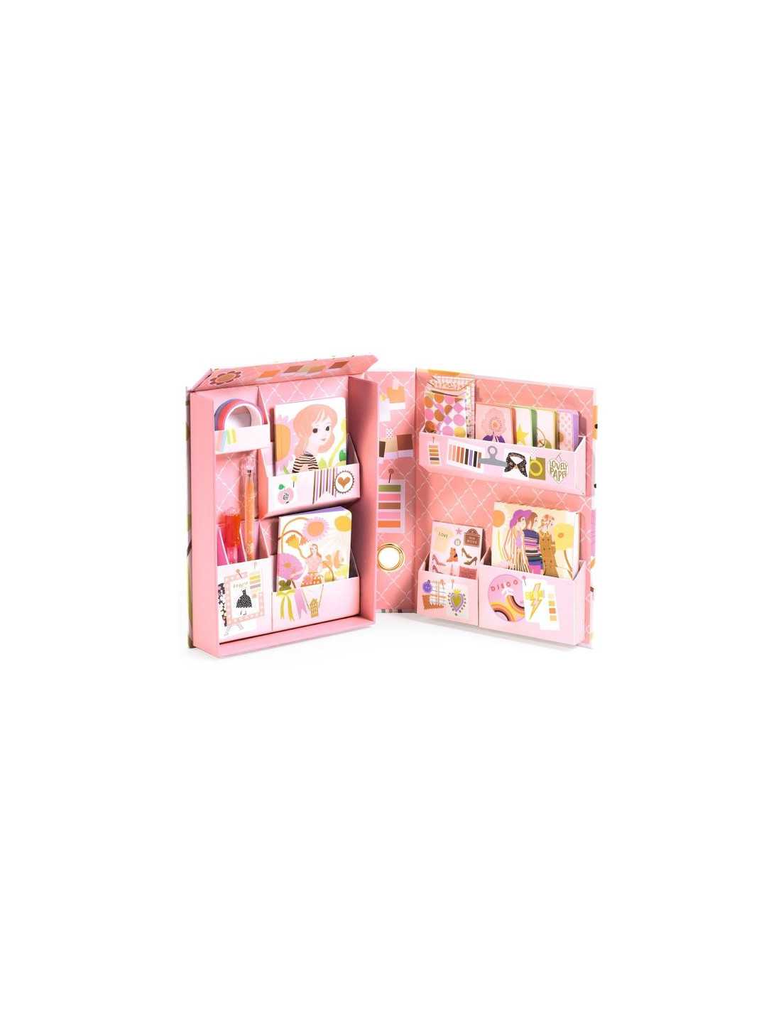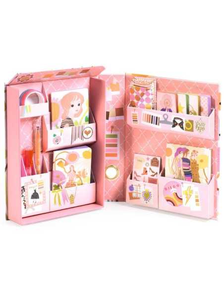 Découvrez l'armoire papeterie Tinou de Lovely Paper by Djeco, un coffret de papeterie très complet sur le thème de la mode.