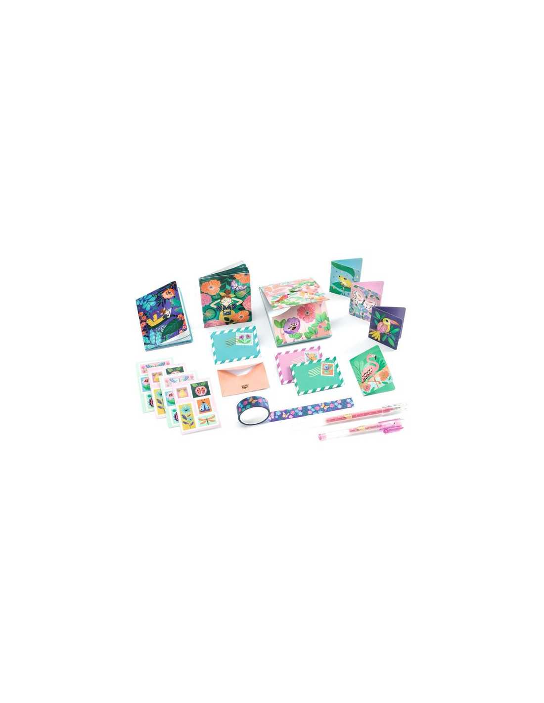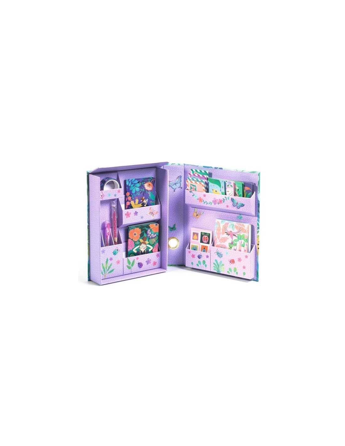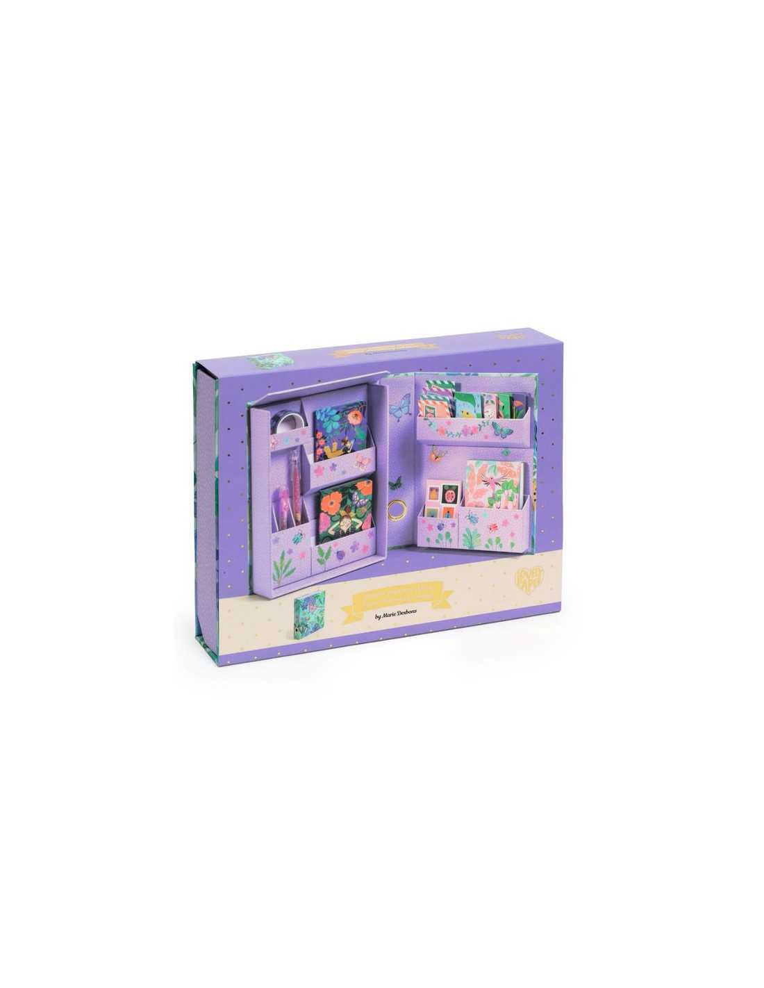 Découvrez l'armoire papeterie Marie de Lovely Paper by Djeco, un coffret de papeterie très complet sur le thème du jardin tropical.