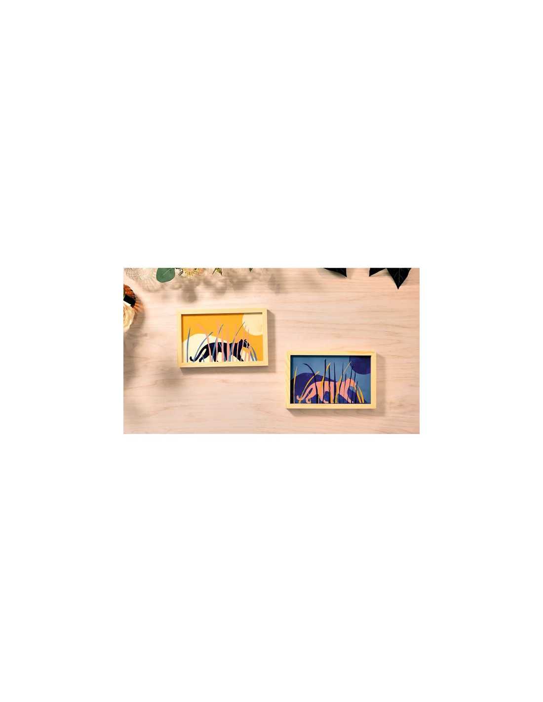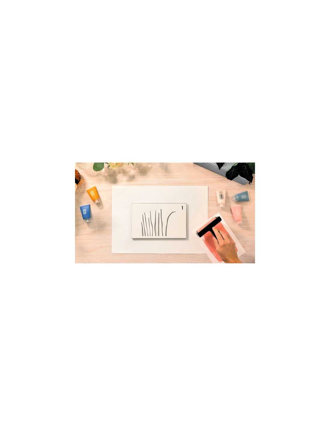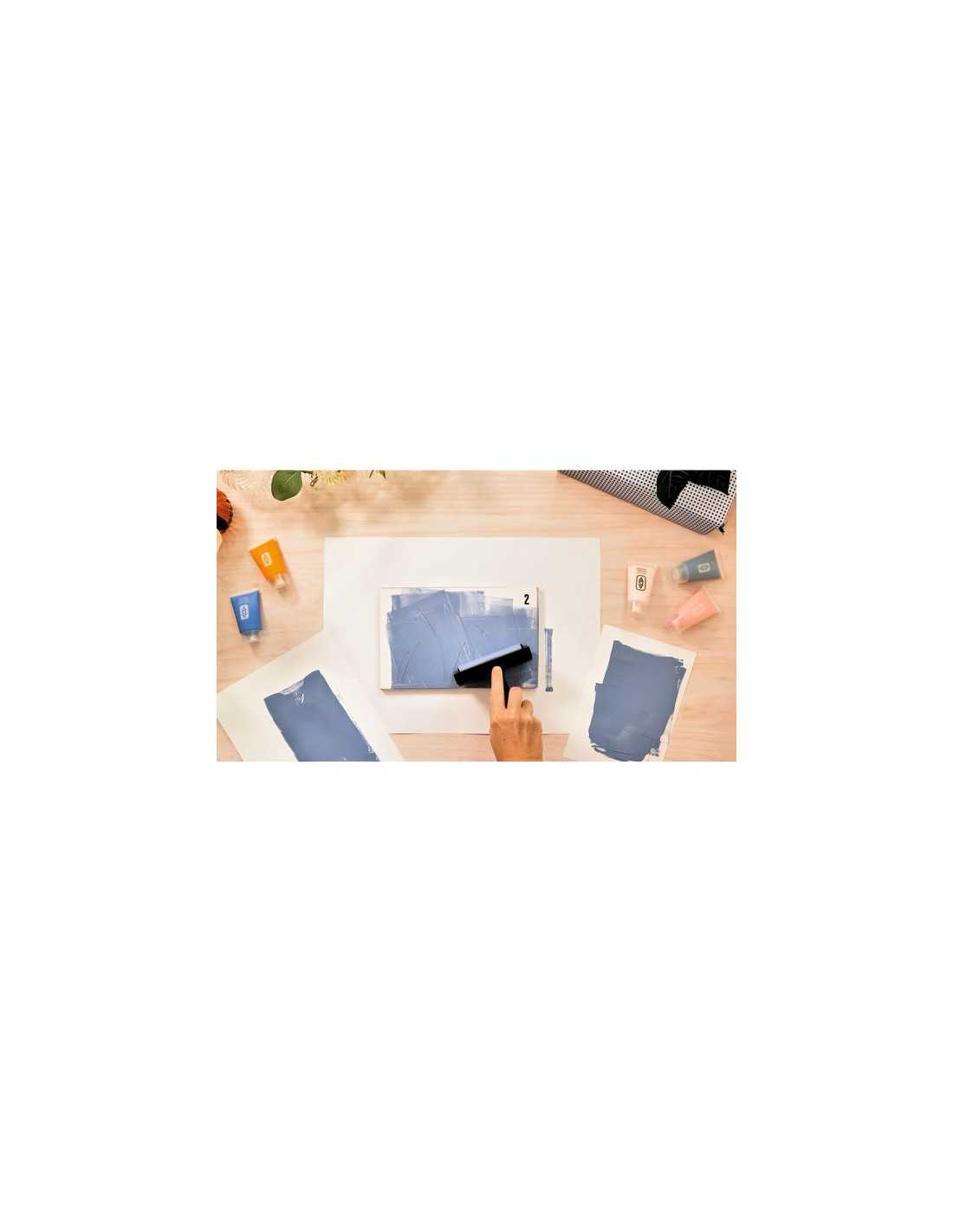 Ce coffret comprend 1 plaque de gel en silicone (format 235 x 150 mm), un rouleau brayer, 5 tubes de peinture 30 ml, 10 papiers à imprimer, 4 pochoirs indéchirables, 2 cadres en bois, un dépliant et une carte avec QR code menant à une vidéo tuto pour découvrir l’activité.
