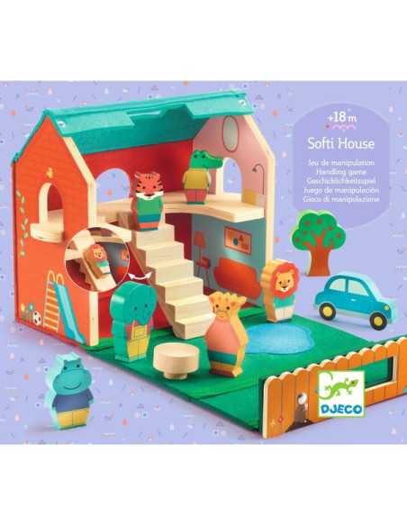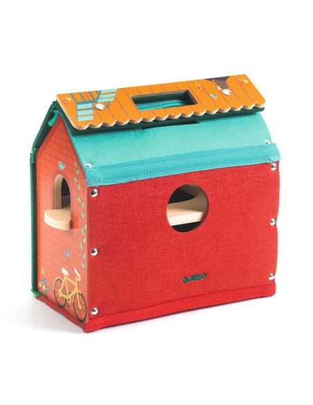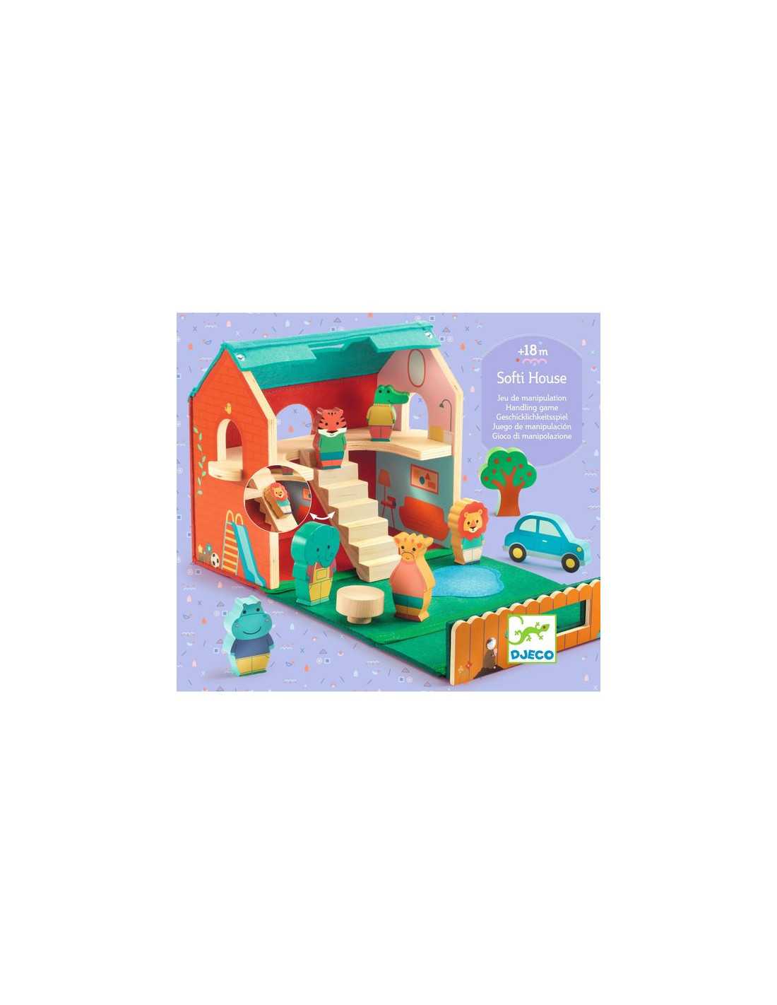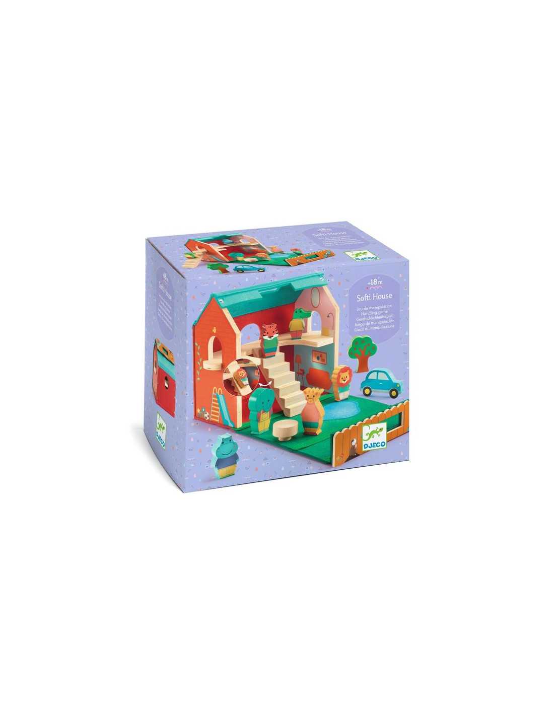 Découvrez Ma maison nomade Softi House de Djeco, un jouet d'éveil en bois conçu pour les enfants dès 18 mois, qui se compose d'une jolie maison qui s'ouvre et de figurines en bois.