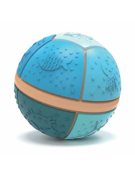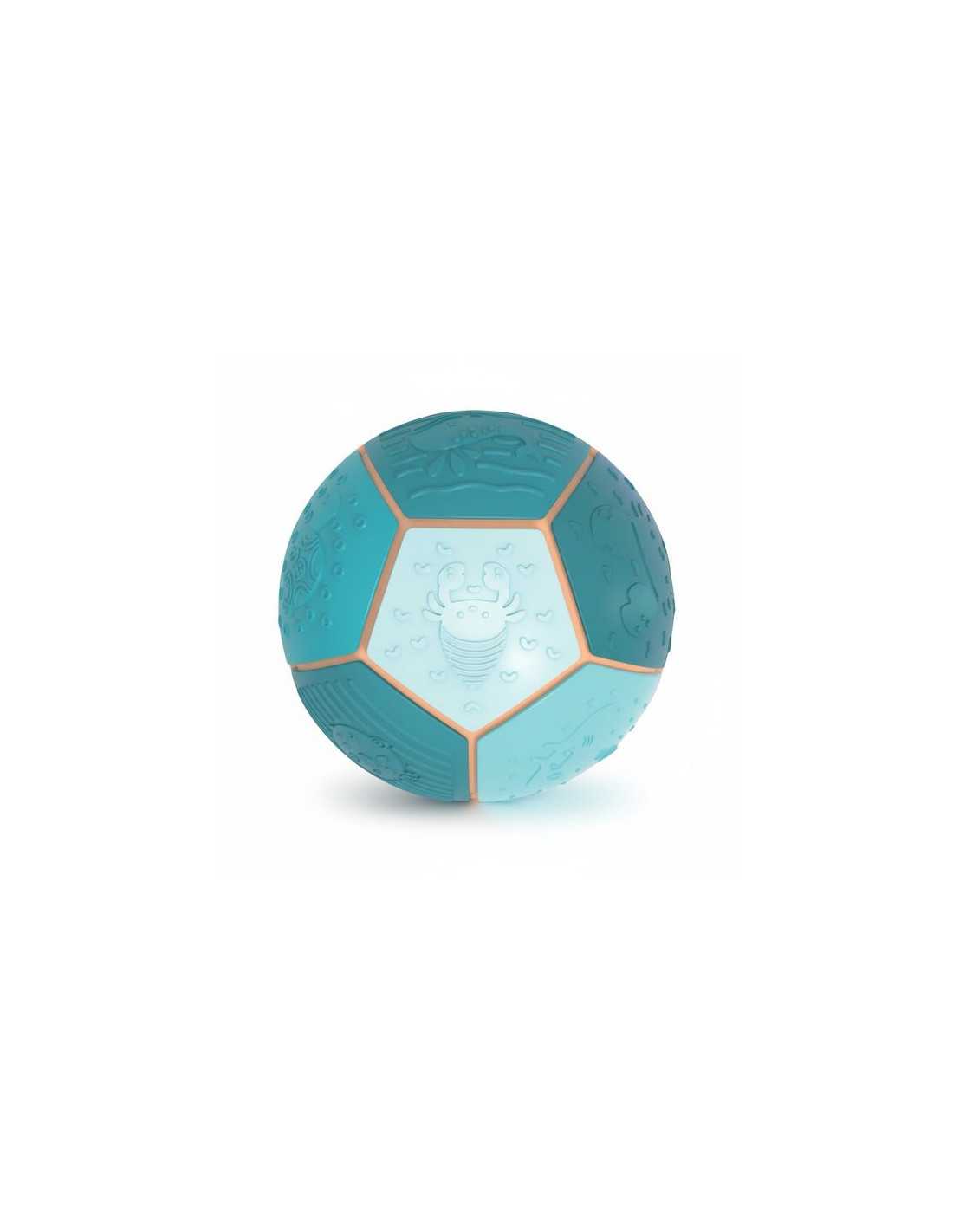 Conçue pour accompagner les premières découvertes des tout-petits, cette balle sensorielle combine des couleurs douces, des textures variées et des motifs en relief représentant des animaux marins qui invitent au toucher et au jeu.