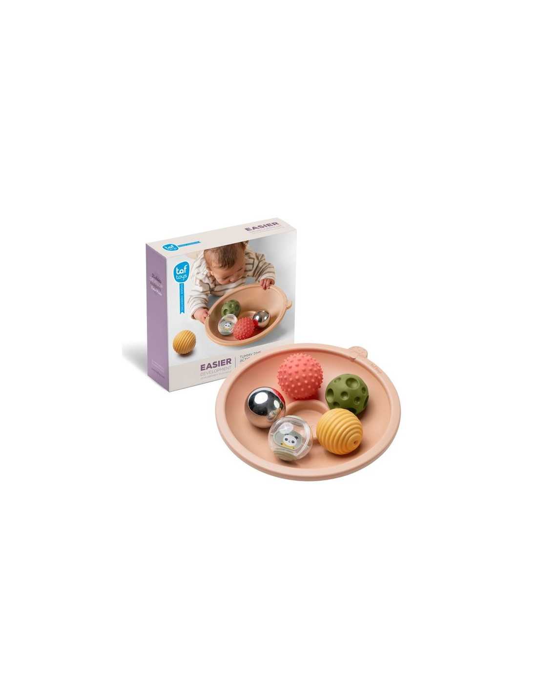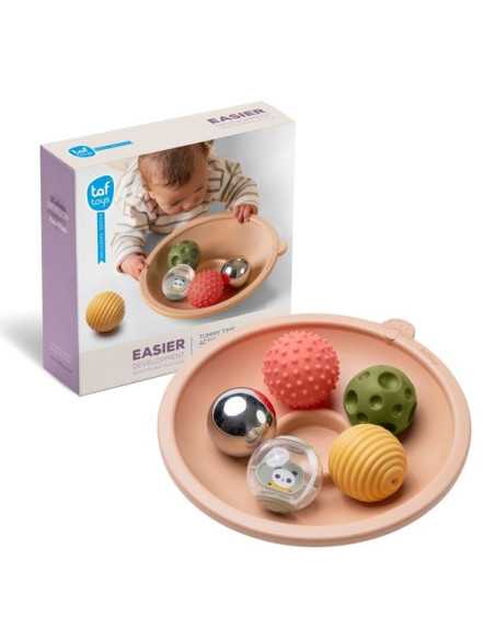 Découvrez les Balles sensorielles Tummy Time de Taf Toys, un jouet d'éveil idéal pour éveiller et stimuler les sens de bébé dès 3 mois version Tummy Time.