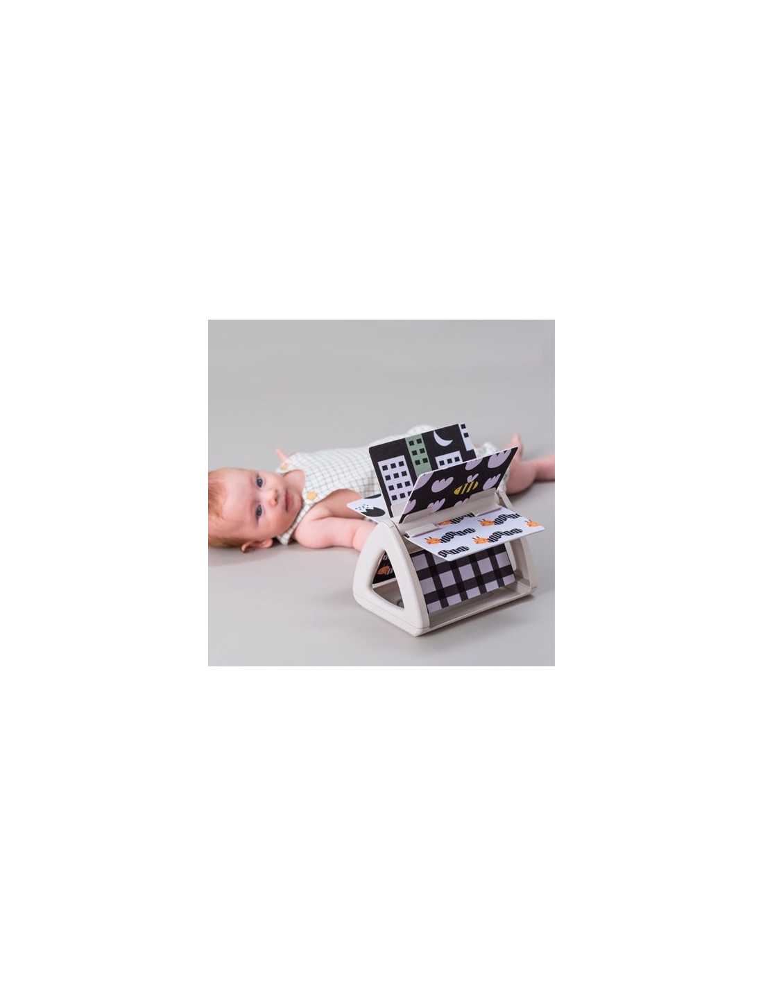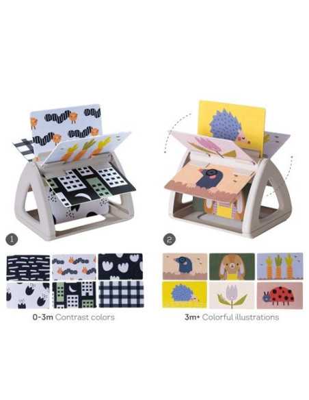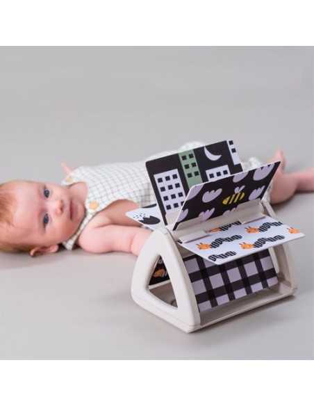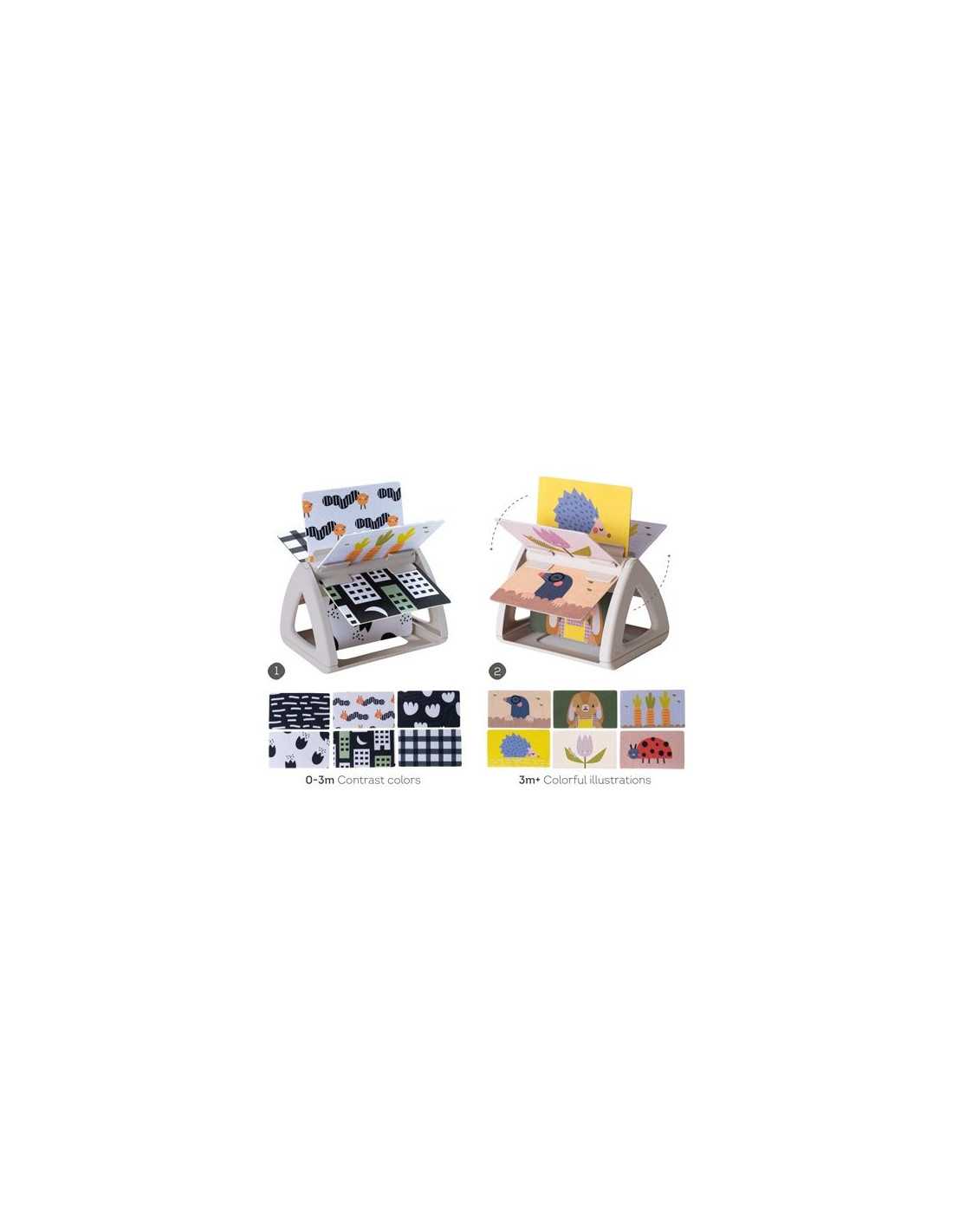 Les cartes, en feutrine, peuvent être retirées du support. Votre enfant appréciera les 6 cartes en feutrine épaisses double face: dessin noir et blanc en contraste et dessins colorés.