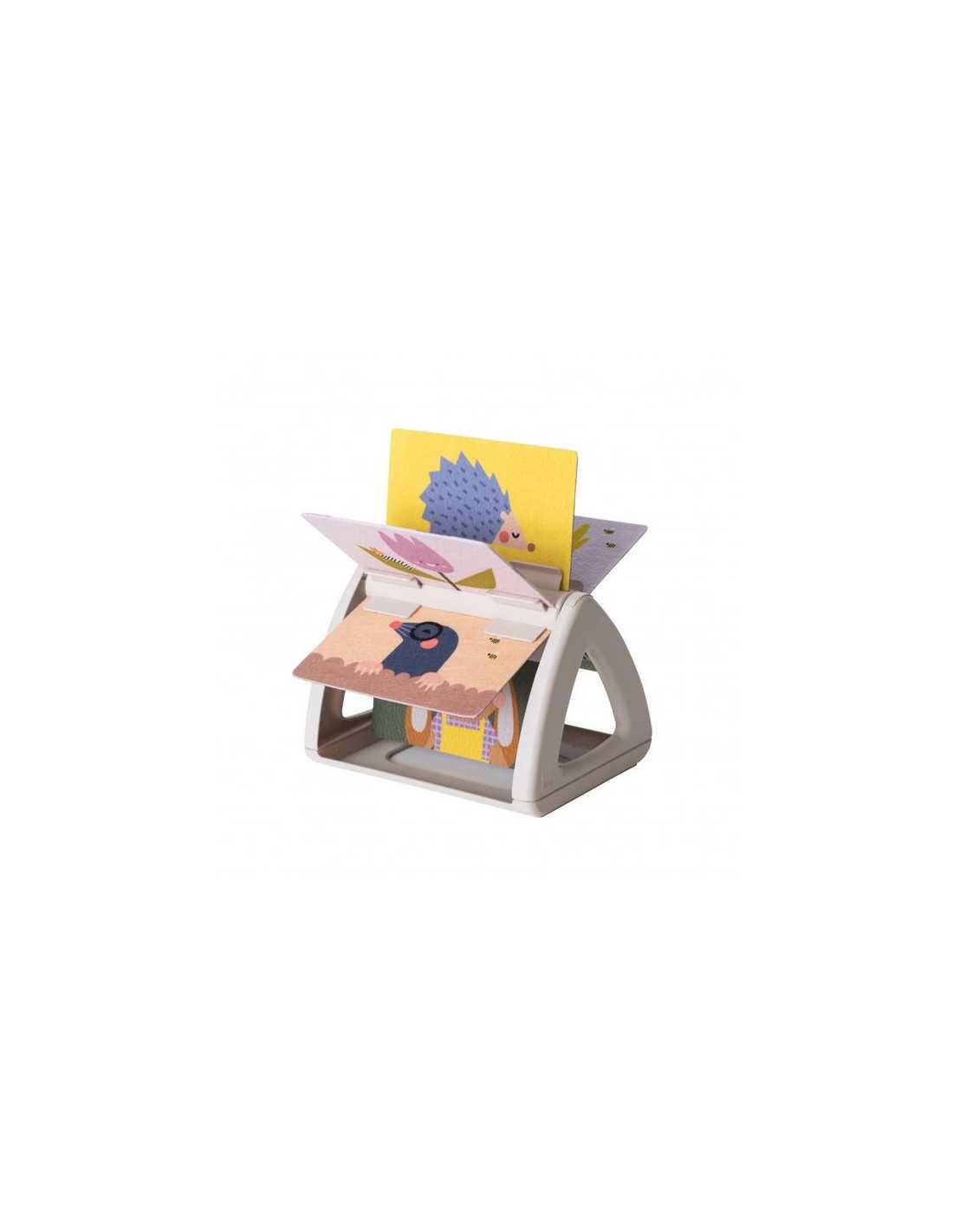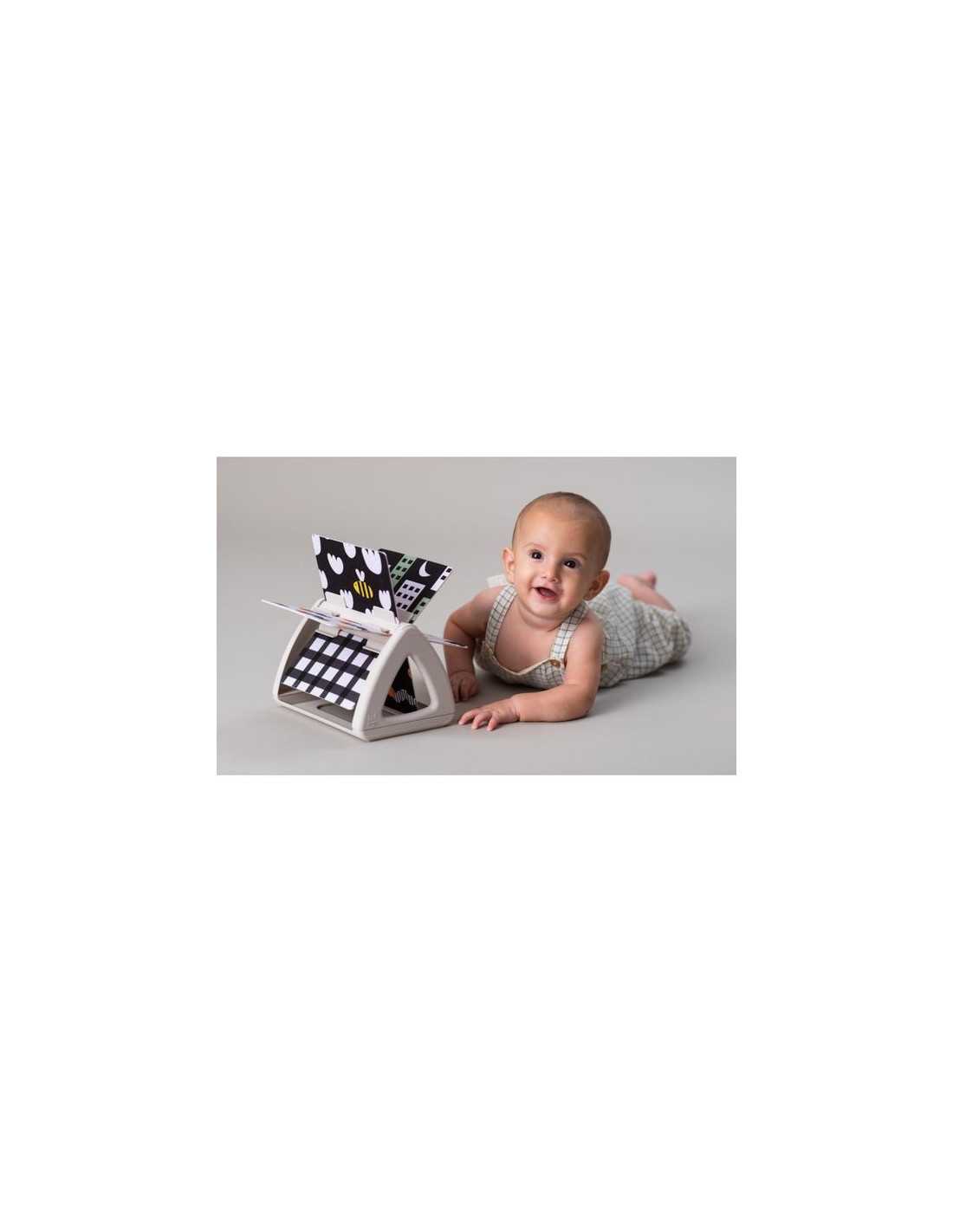 Un livre sous forme de chevalet où bébé peut tourner les pages. Lorsque bébé tourne les pages, cela déclenche un son de grelot.