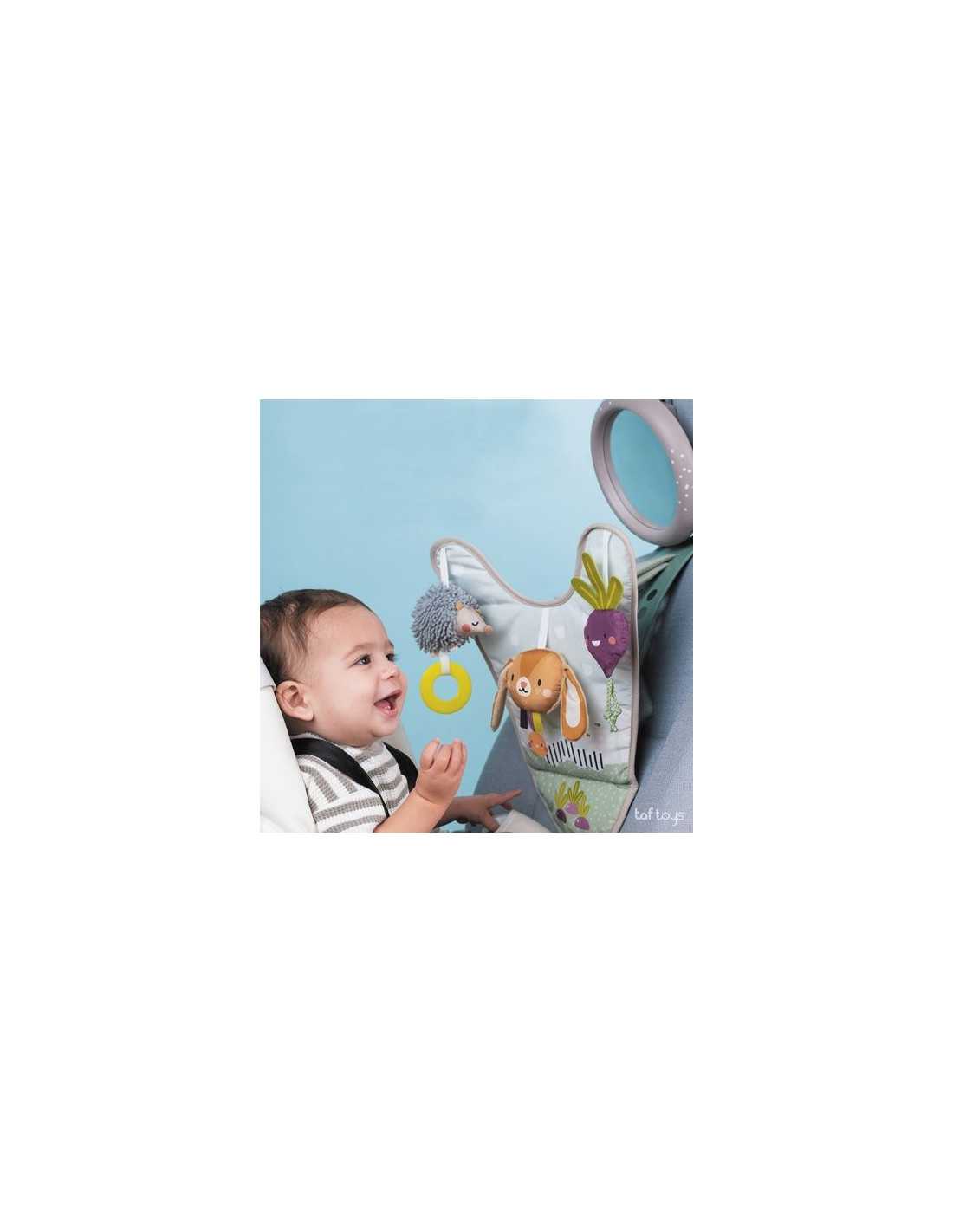 Découvrez le Jouet de voiture tout en 1 Jardin de Taf Toys, un jouet d'éveil idéal pour occuper bébé lors des trajets en voiture dès la naissance.