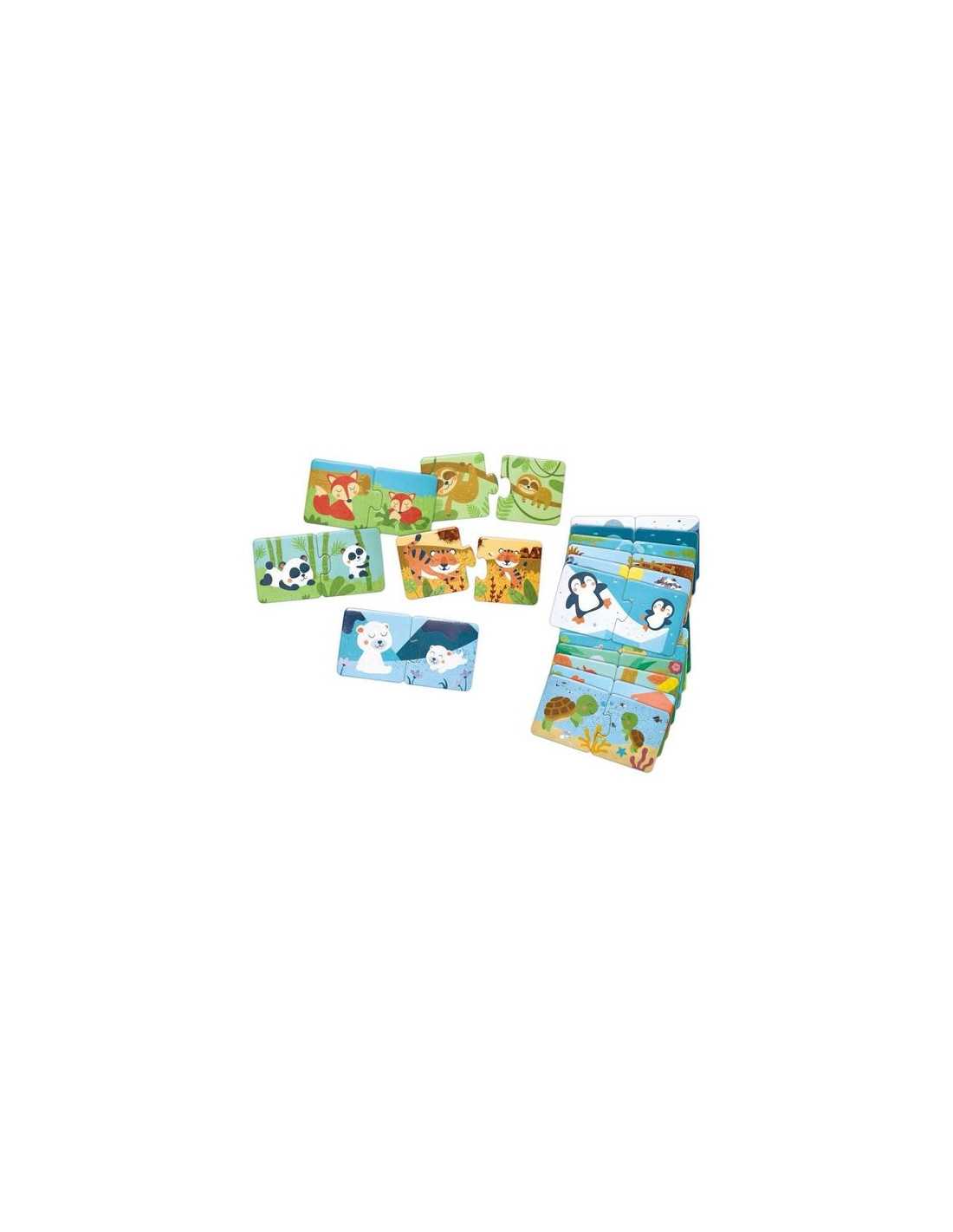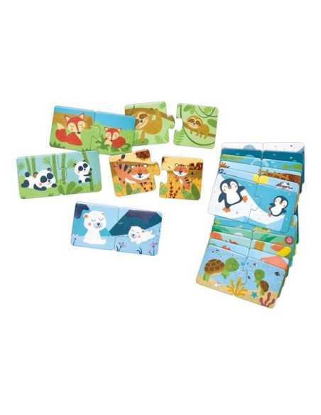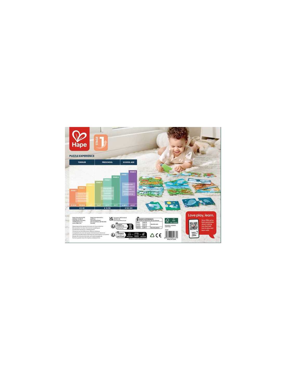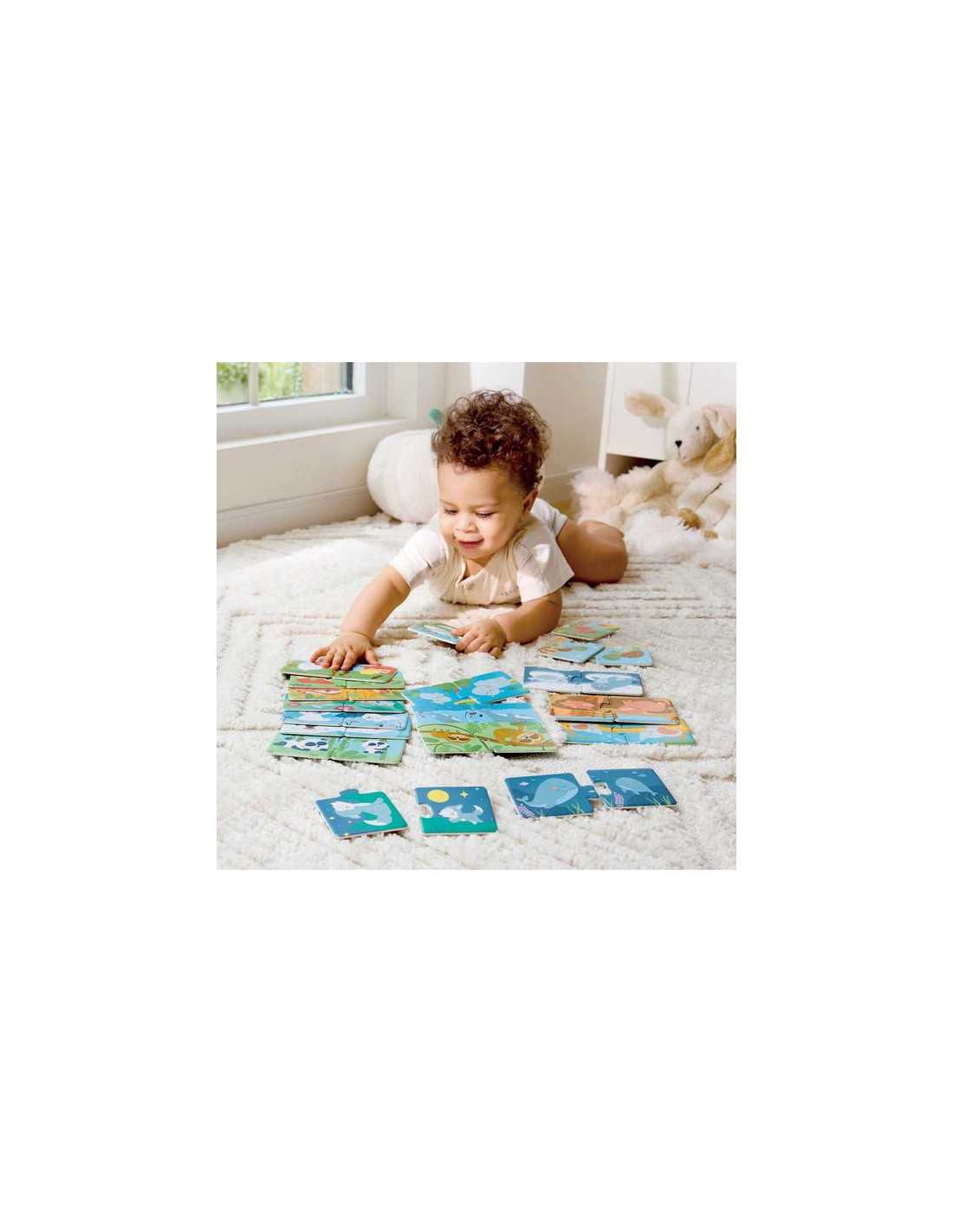 Découvrez les puzzles Famille d’animaux de Hape, un coffret comprenant 18 puzzles de 2 pièces, idéal pour les enfants de 12 à 24 mois.