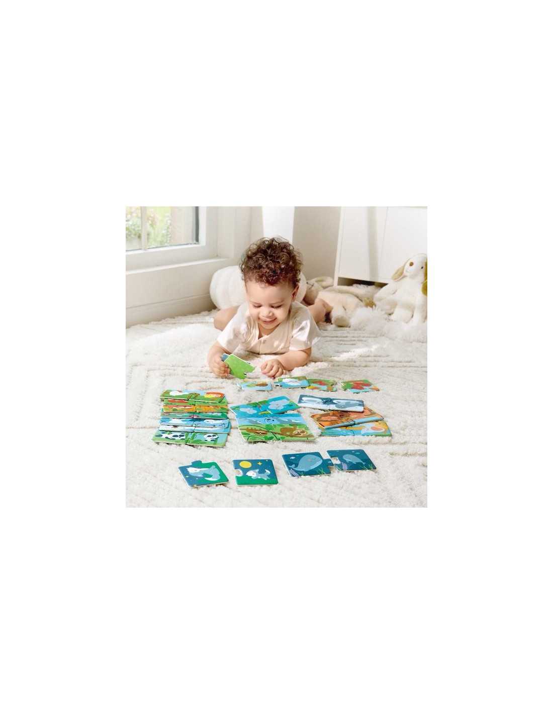 Votre enfant pourra reconstituer les 18 paires représentant chaque animal avec son bébé. Ce coffret de puzzles duo "Parent et Bébé" offre une expérience à la fois ludique et éducative. Les illustrations sont vives, colorées et détaillées, avec une finition spéciale sur la surface, captivant les enfants dès le premier coup d'œil.