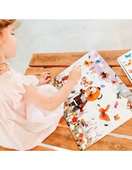 Votre enfant s'amusera à découvrir le monde merveilleux des papillons. Après avoir mouillé le puzzle à l'aide du pinceau, il pourra observer de jolis détails qui disparaîtront en séchant... une activité à faire et refaire à volonté!