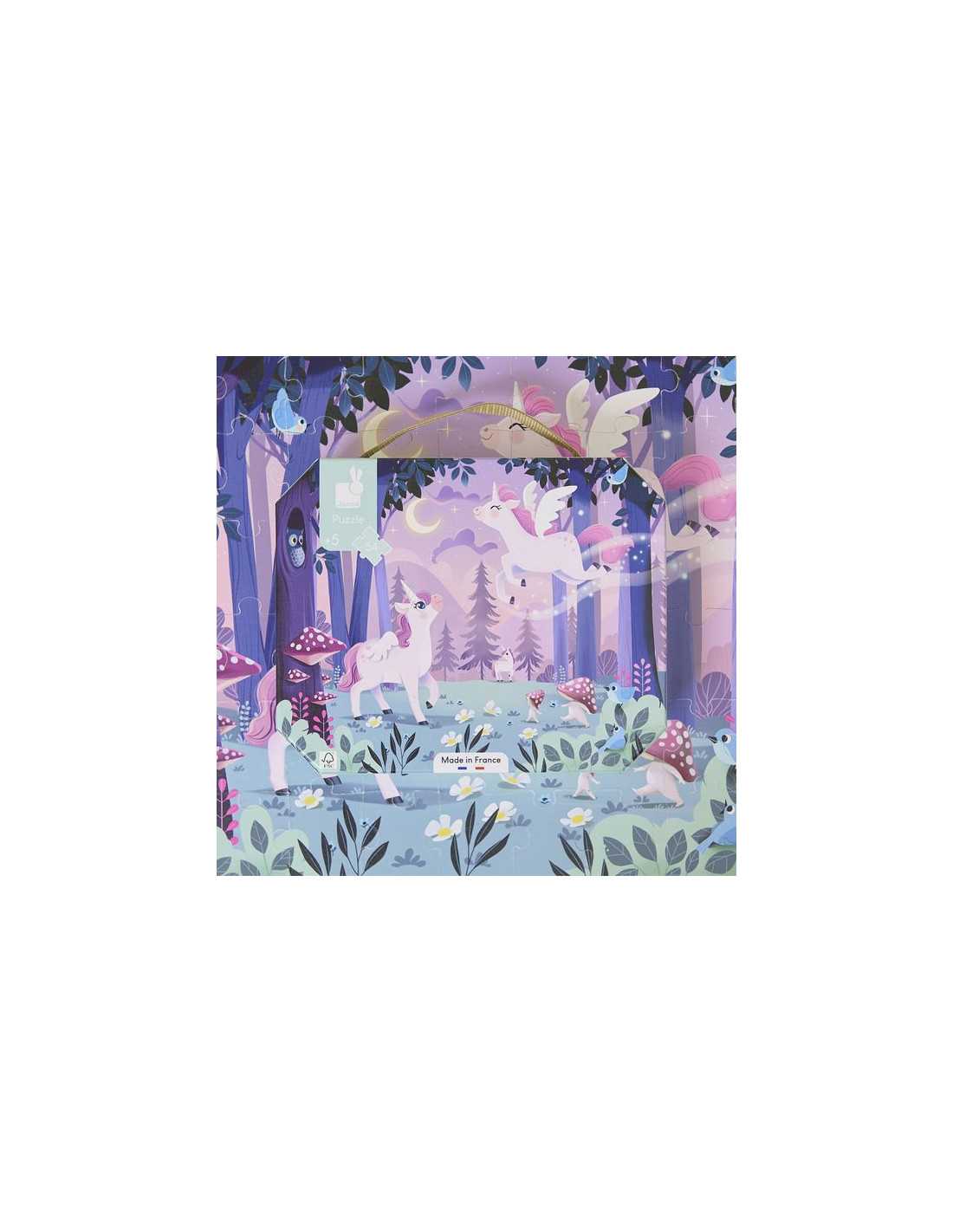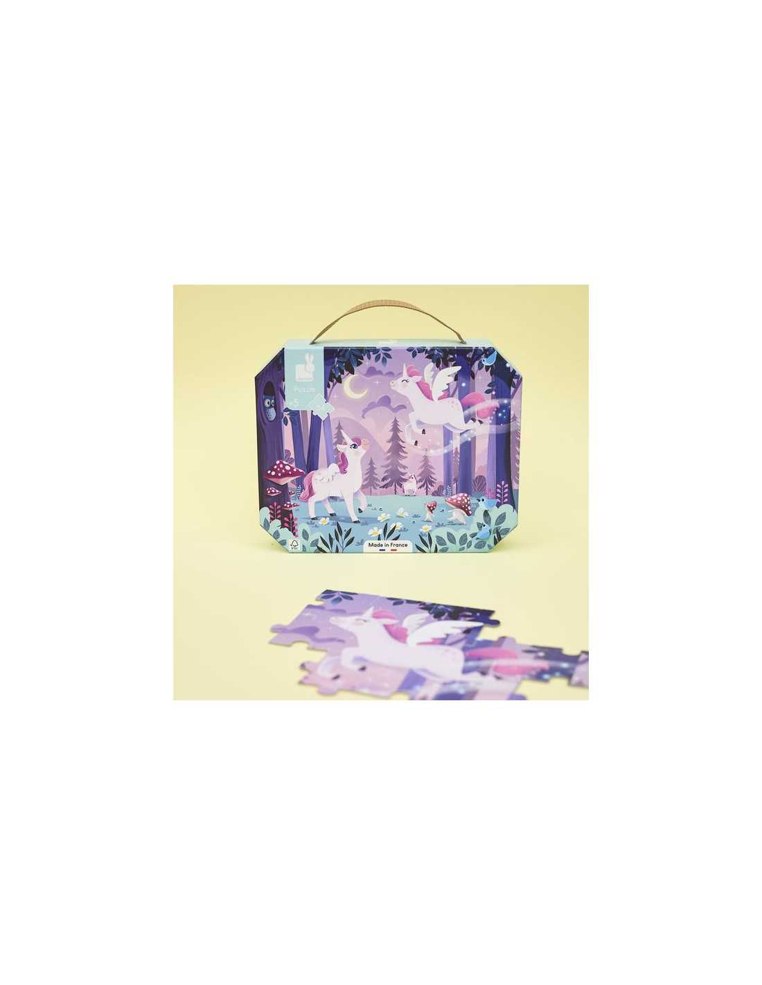 Découvrez le puzzle Licornes de Janod, un magnifique puzzle de 54 pièces en carton pour les enfants dès 5 ans. Un puzzle fabriqué en France sur le thème de la licorne.