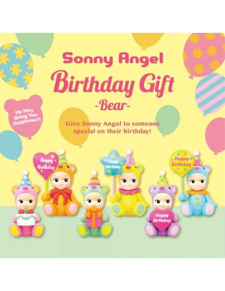 Découvrez la figurine Sonny Angel anniversaire, une collection de figurines d'oursons plus mignonnes les unes que les autres sur le thème des anniversaires. Ces petits anges déguisés et cachés dans une boite "mystère" vont vous faire craquer. Six personnages charmants à collectionner.
