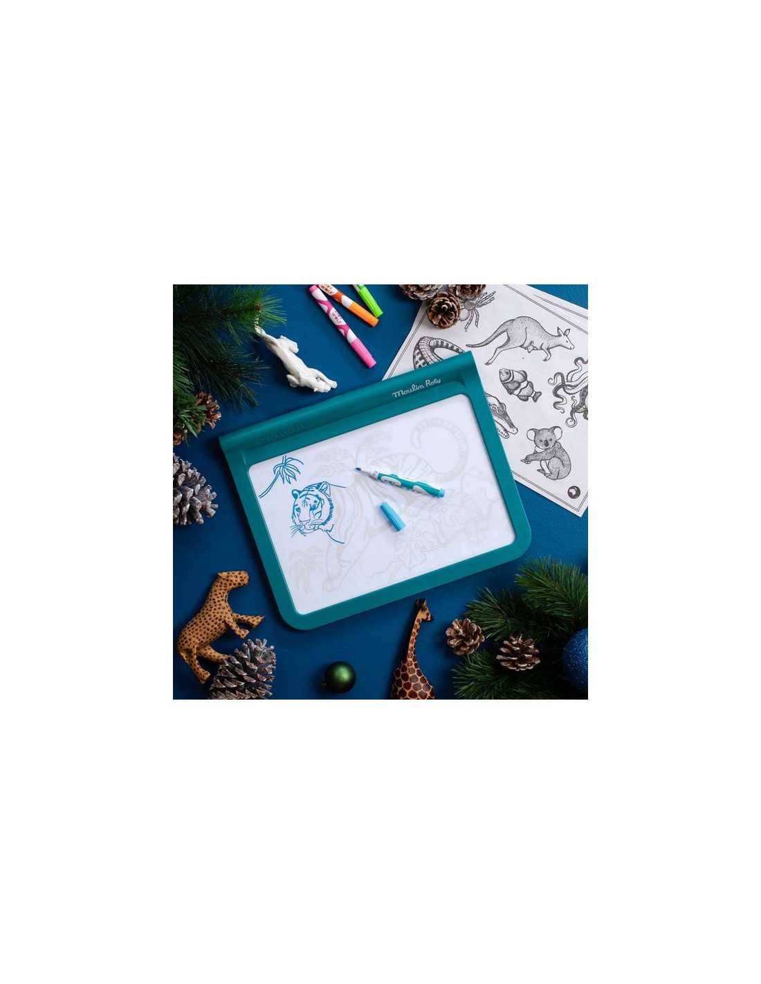 Grâce à cette tablette réversible, votre enfant pourra reproduire fidèlement les animaux de la collection Tout autour du monde. La face avant permet à l'enfant de reproduire un dessin, alors que la face arrière propose un tableau noir en plexiglass avec un effet néon, qui illumine les couleurs du dessin pendant la nuit.