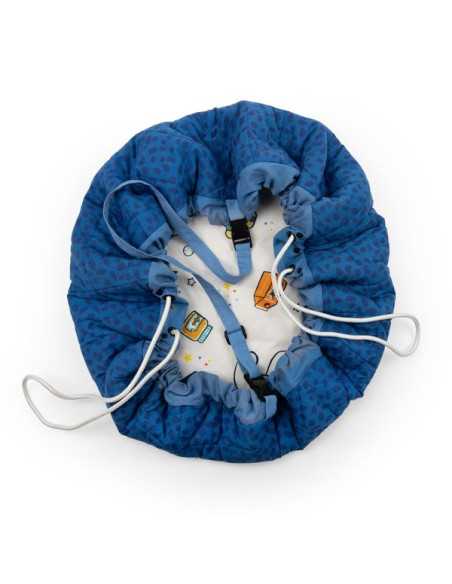 Découvrez le tapis de jeu et sac de rangement de la collection Puce & Pilou de Moulin Roty et Play&Go, un magnifique tapis de jeu molletonné en toile 100% coton qui se transforme en sac de rangement à emmener partout avec soi. Il suffit de resserrer ses deux cordons puis de le transporter grâce à sa lanière ajustable.
