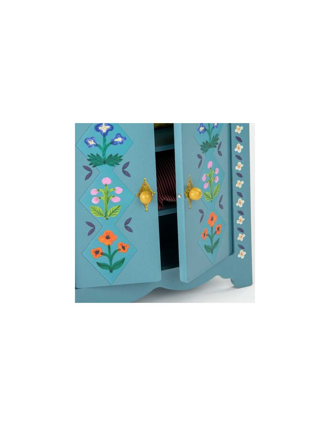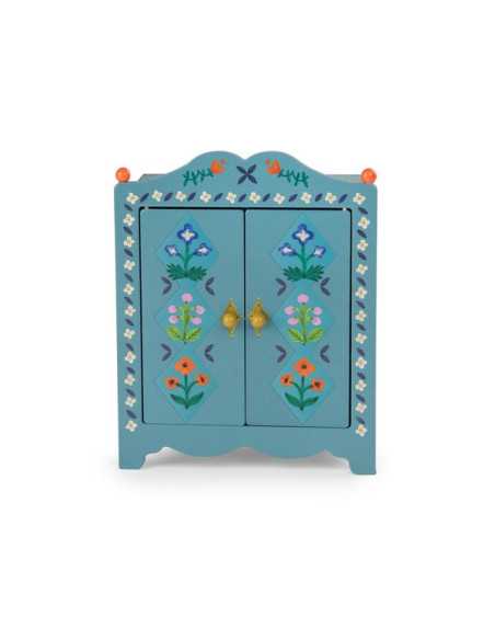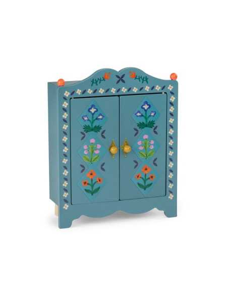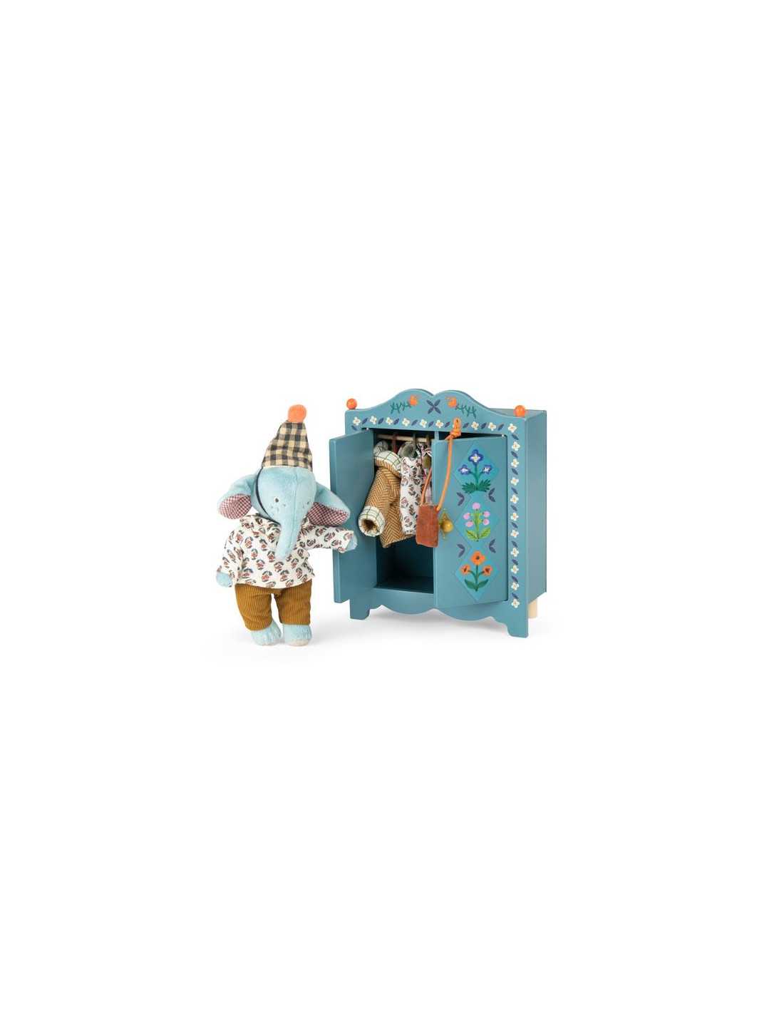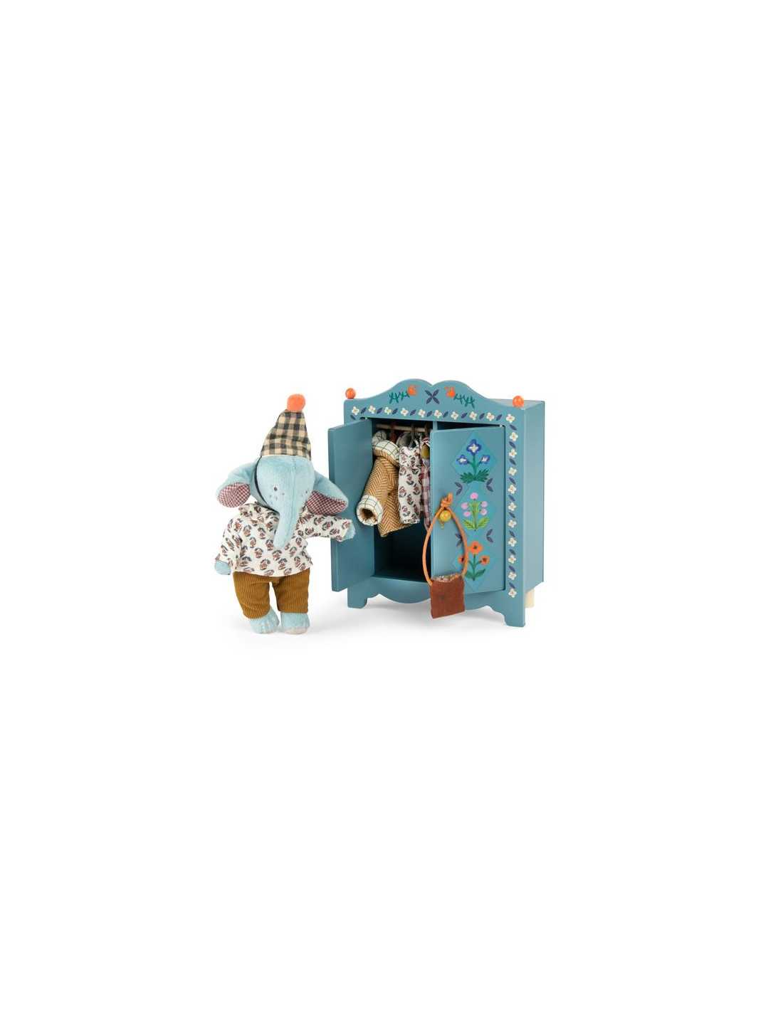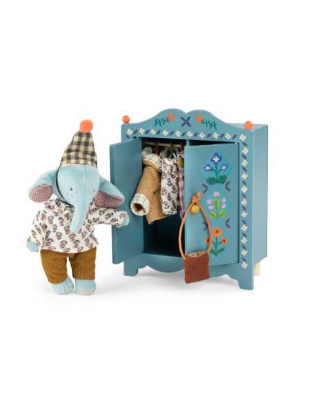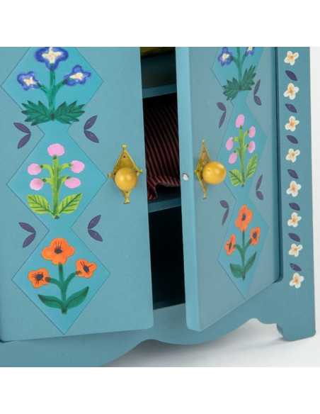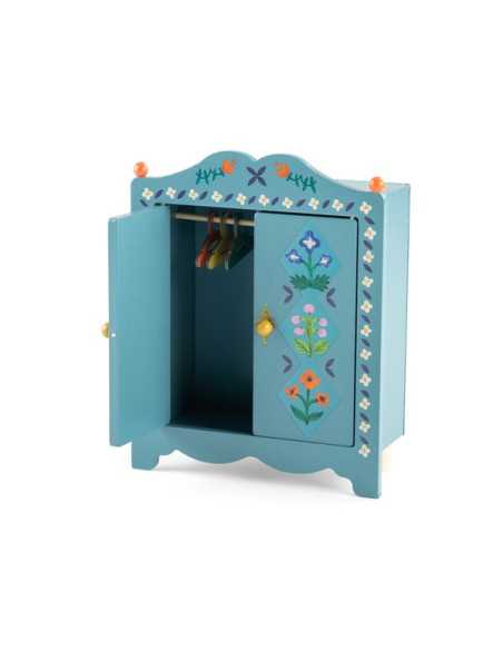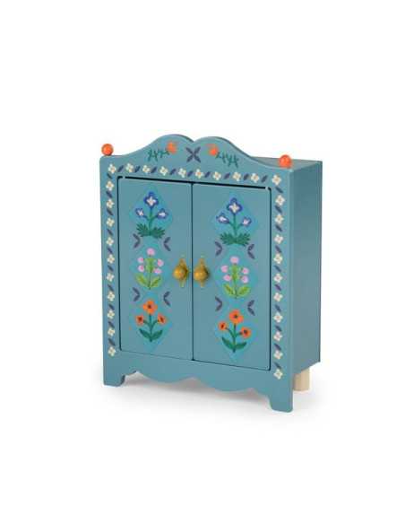Découvrez l'armoire en bois de la collection Les Minouchkas de Moulin Roty, des accessoires de maison de poupée pour se raconter de belles histoires avec les poupées articulées Minouchlas à partir de 3 ans.