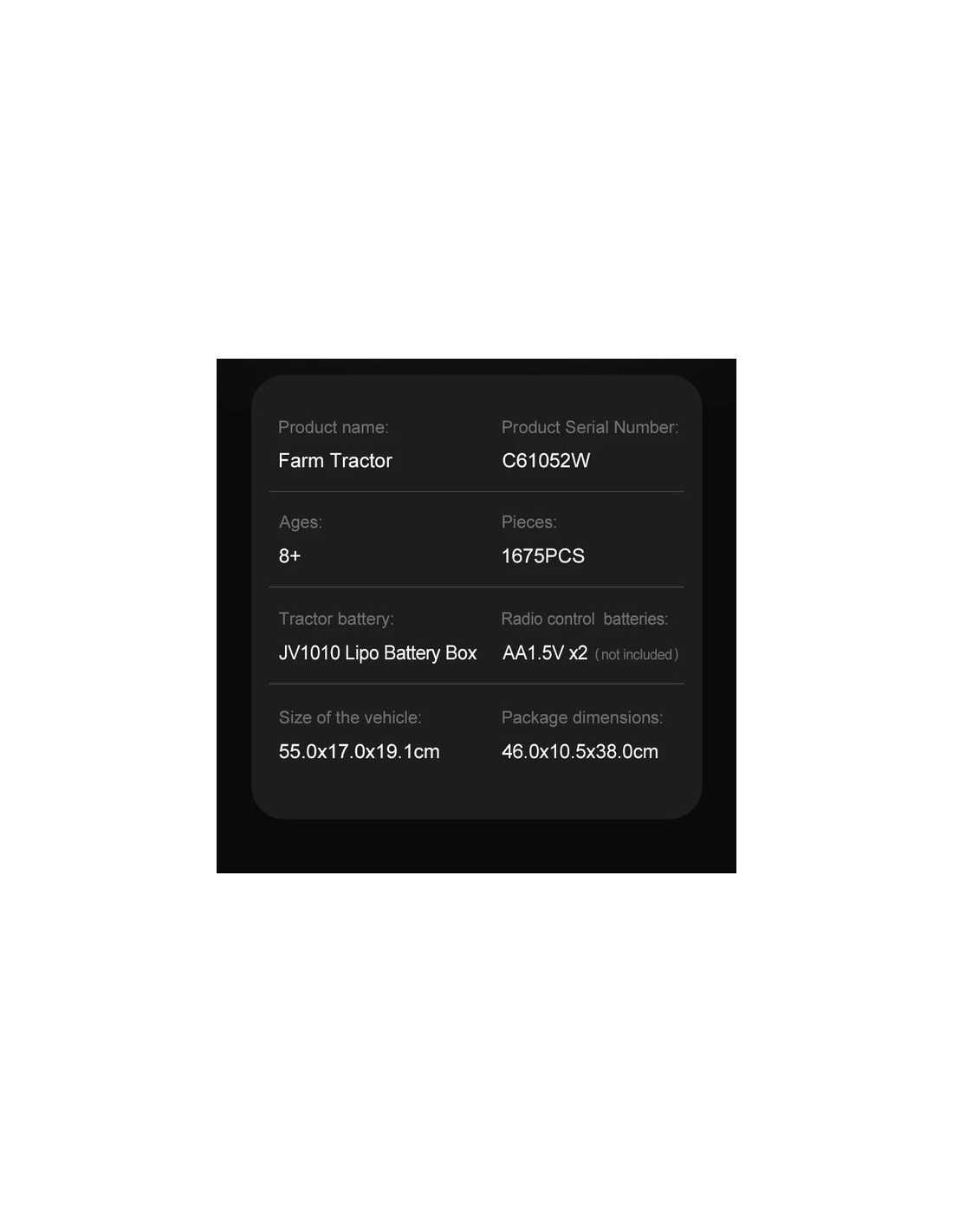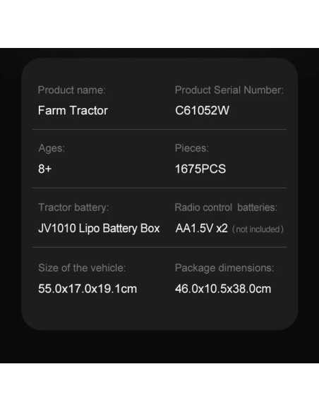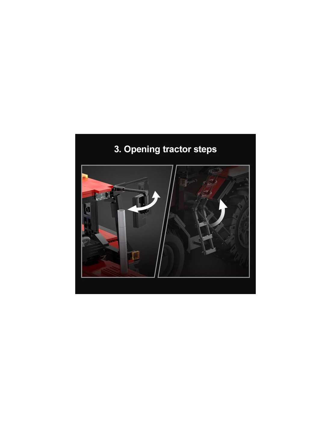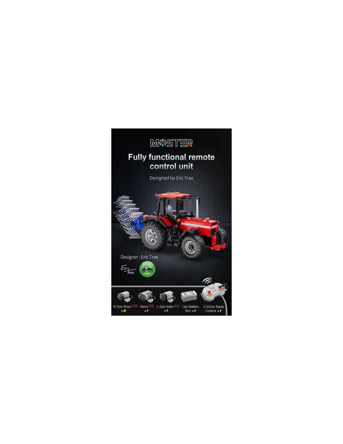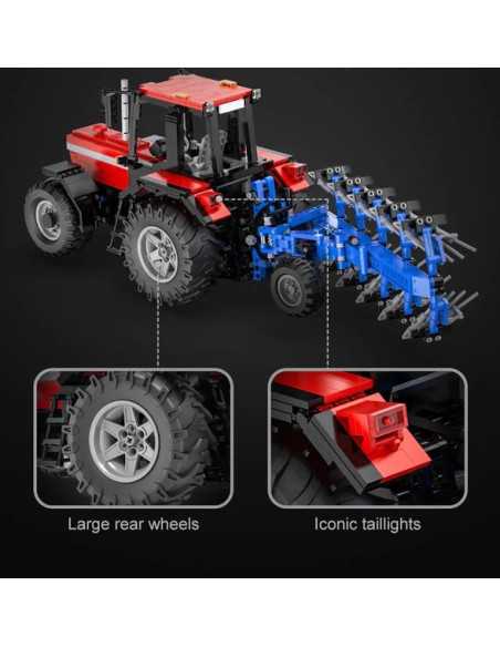 Vivez l'excitation d'un jeu de construction réaliste avec ce tracteur tout en briques que vous pourrez radio télécommander (RC). Conduisez, dirigez et contrôlez la charrue rotative à 180°, le tout depuis votre paume ! Un tracteur avec de grandes roues arrière et des outils détachables (charrue/râteau) et des lumières LED.