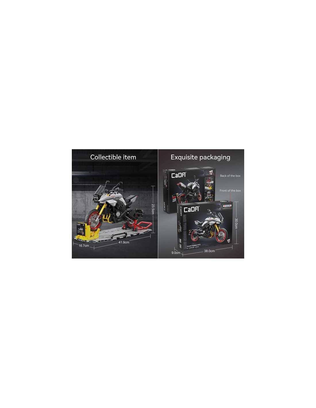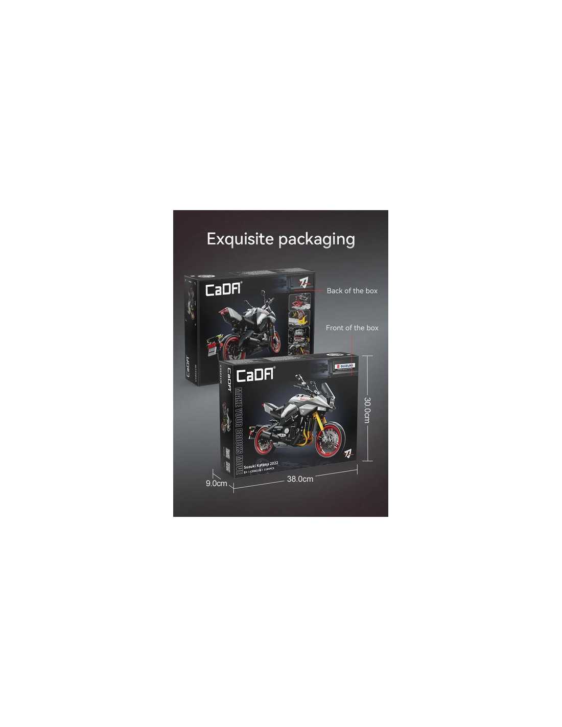 Découvrez le coffret Moto Suzuki Katana 1104 pièces de CaDA, un jeu de construction avec des briques pour réaliser sa moto de sport à partir de 8 ans.