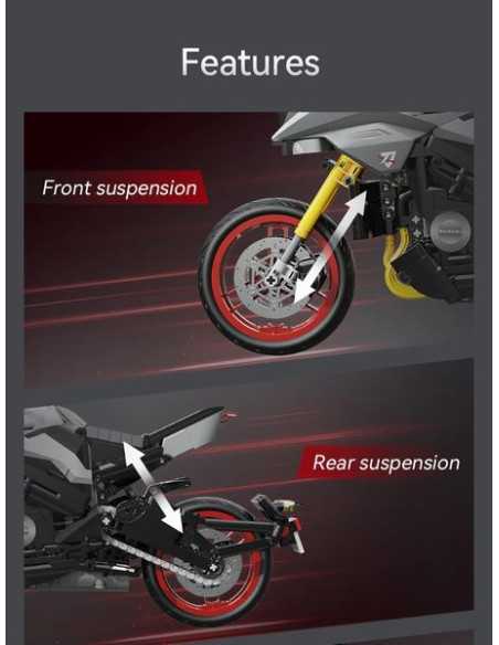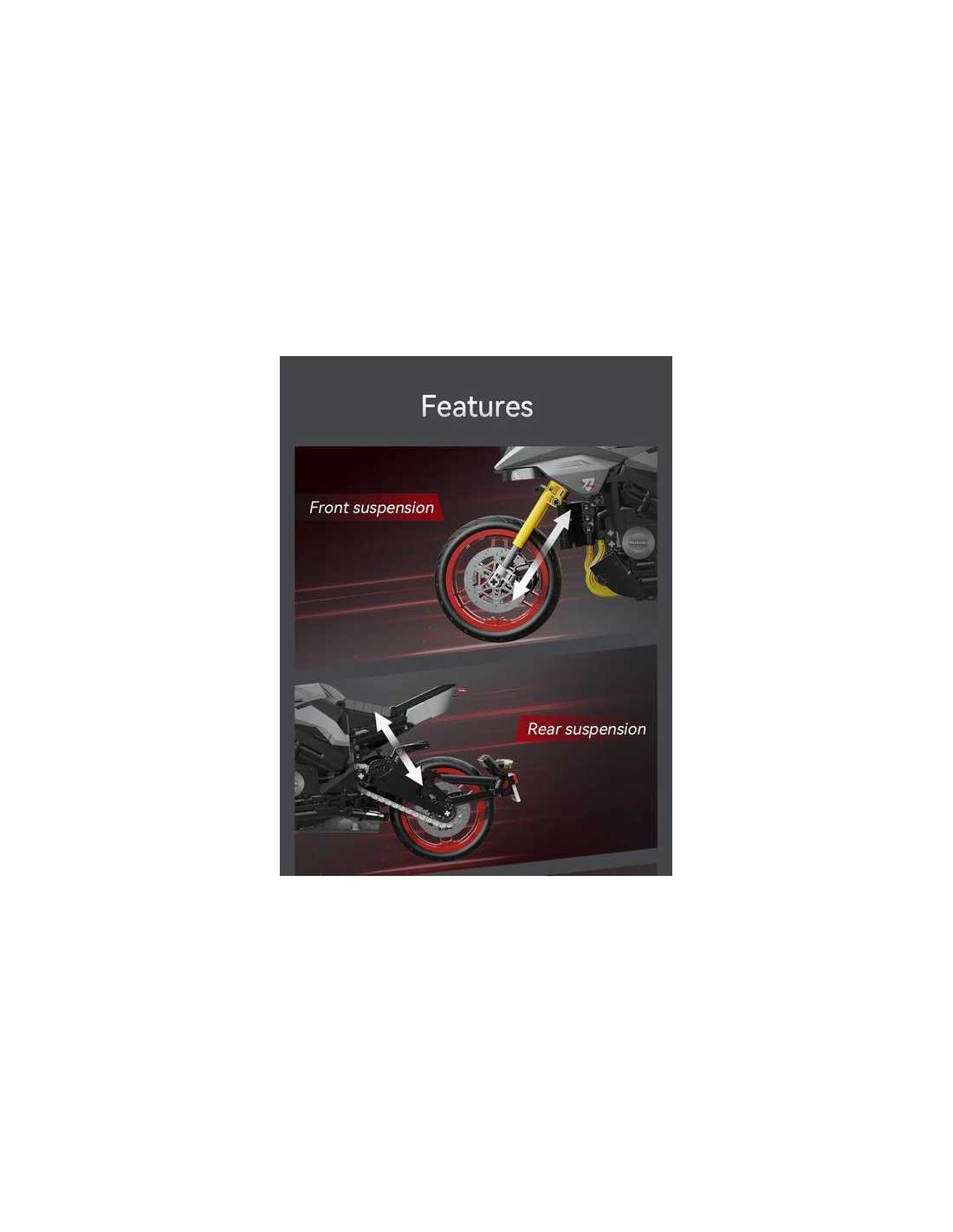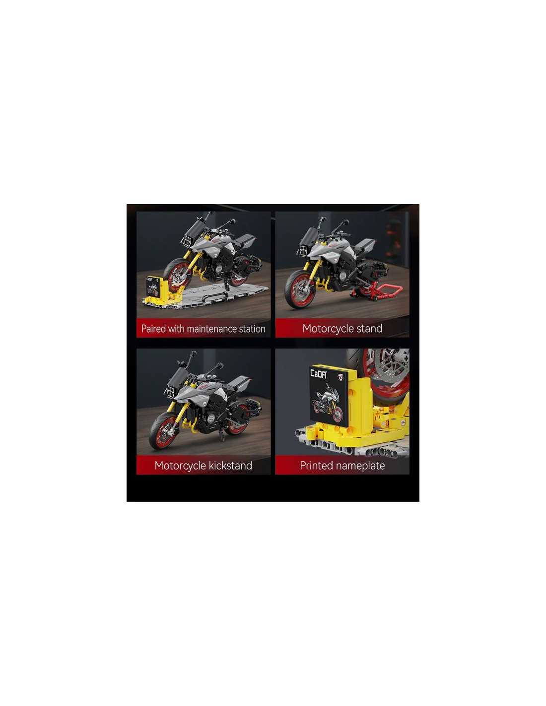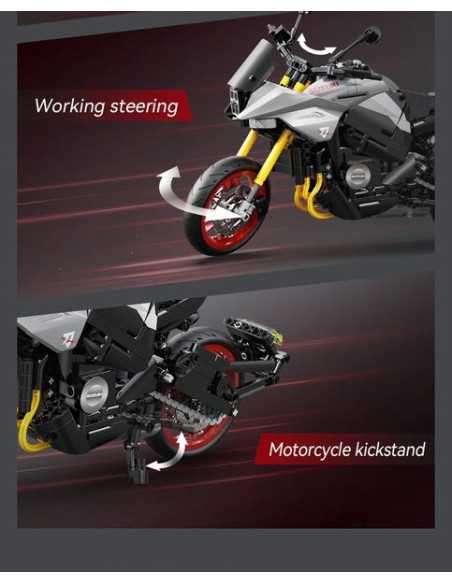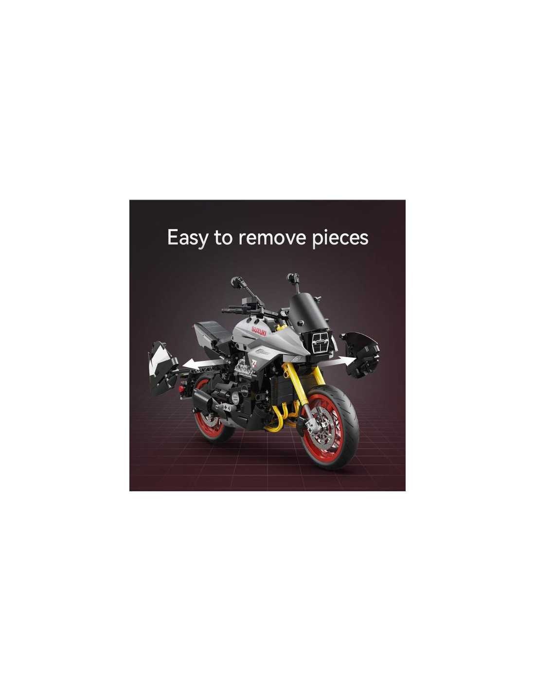 La moto Suzuki Katana est livrée avec deux ensembles de présentoirs et de plateformes d'entretien. Le moteur transparent relie les roues arrière pour restituer la structure réelle de la transmission mécanique ; la roue avant simule une direction à grande échelle, un contrôle souple et une excellente sensation de jeu.