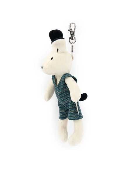 Tout doux et habillé d'une combinaison rayé vintage, il sera votre fidèle compagnon. Pratique avec son anneau, accrochez-le à vos clés, sacs ou trousses, et emmenez-le partout avec vous !