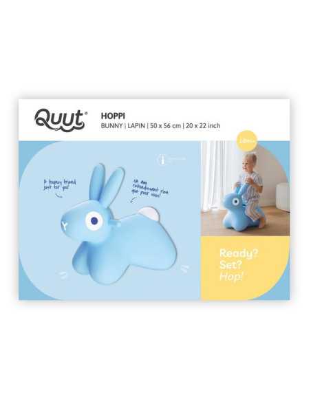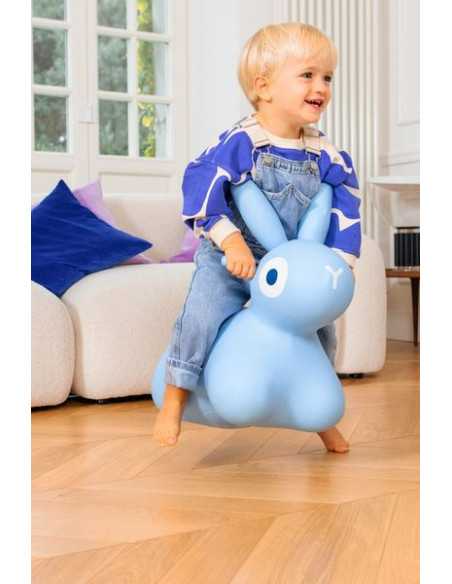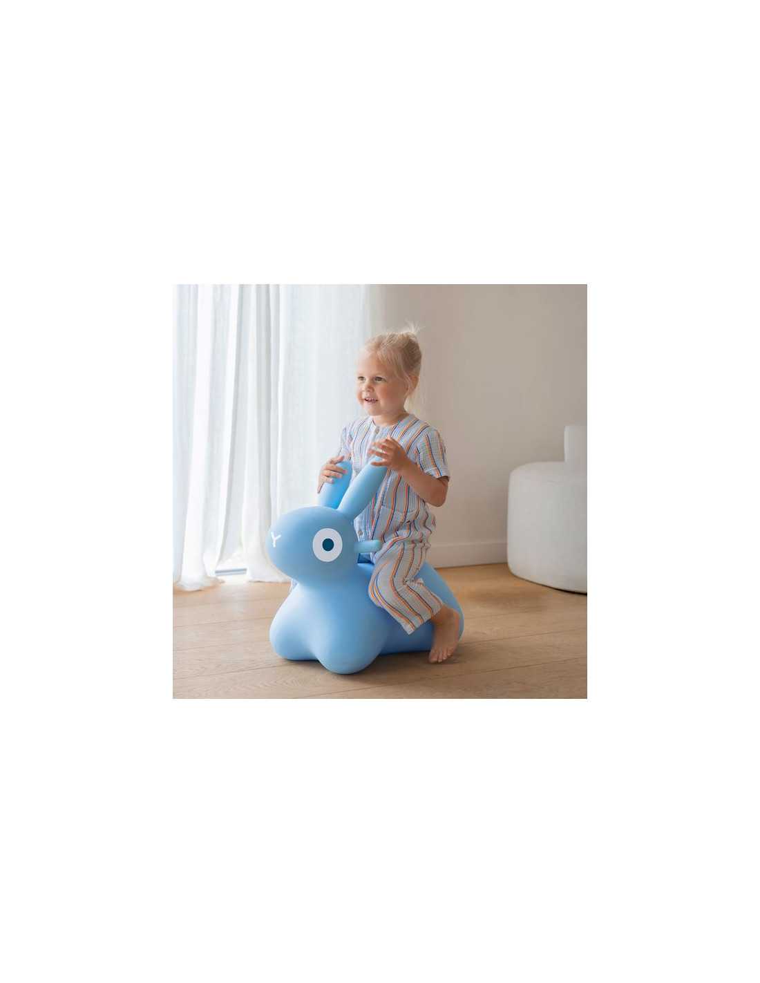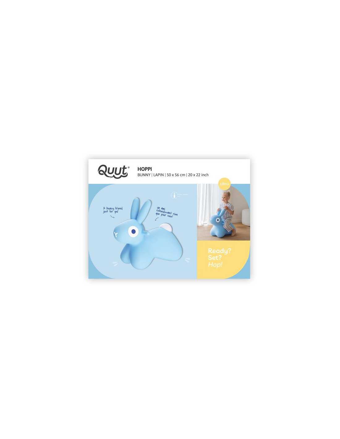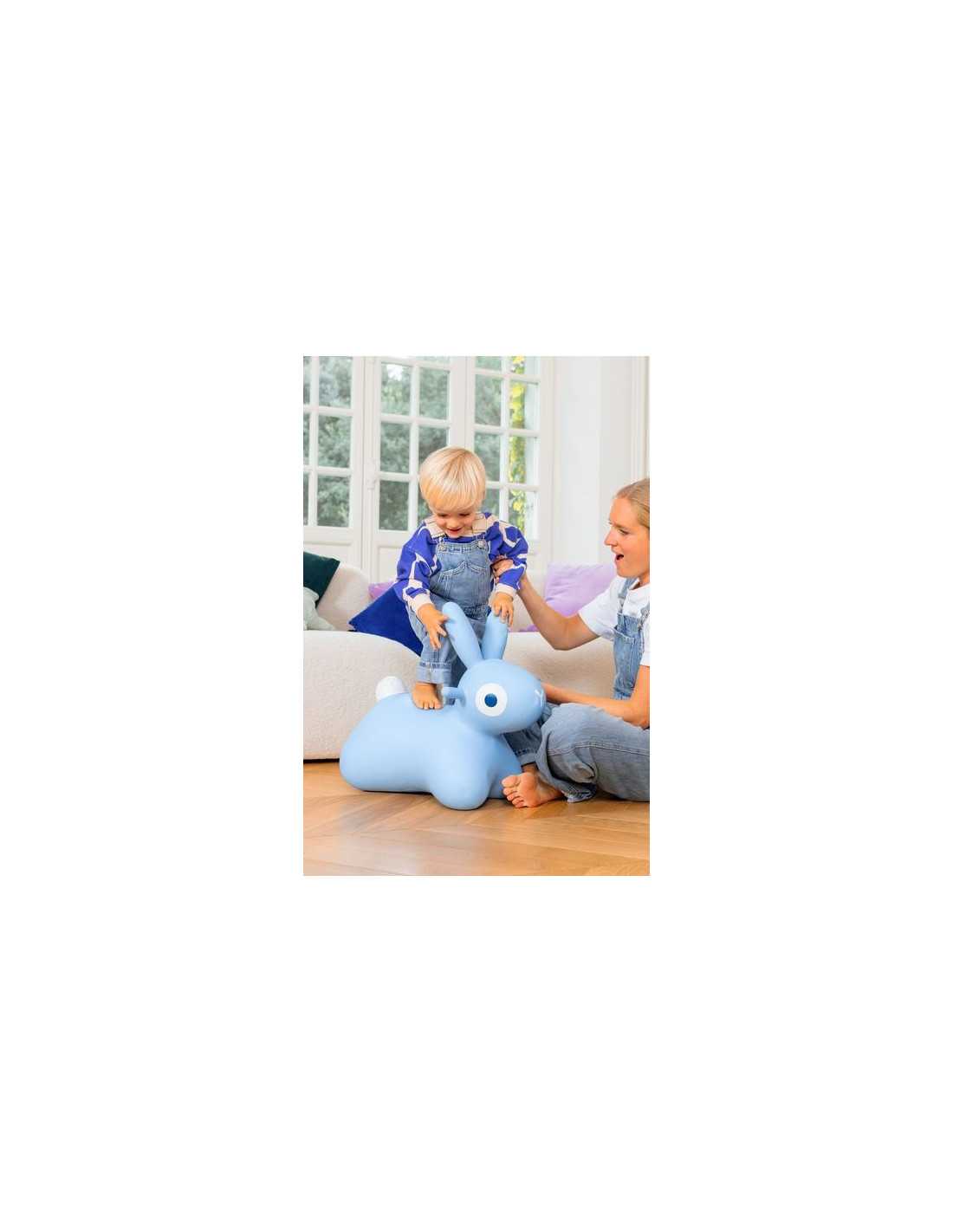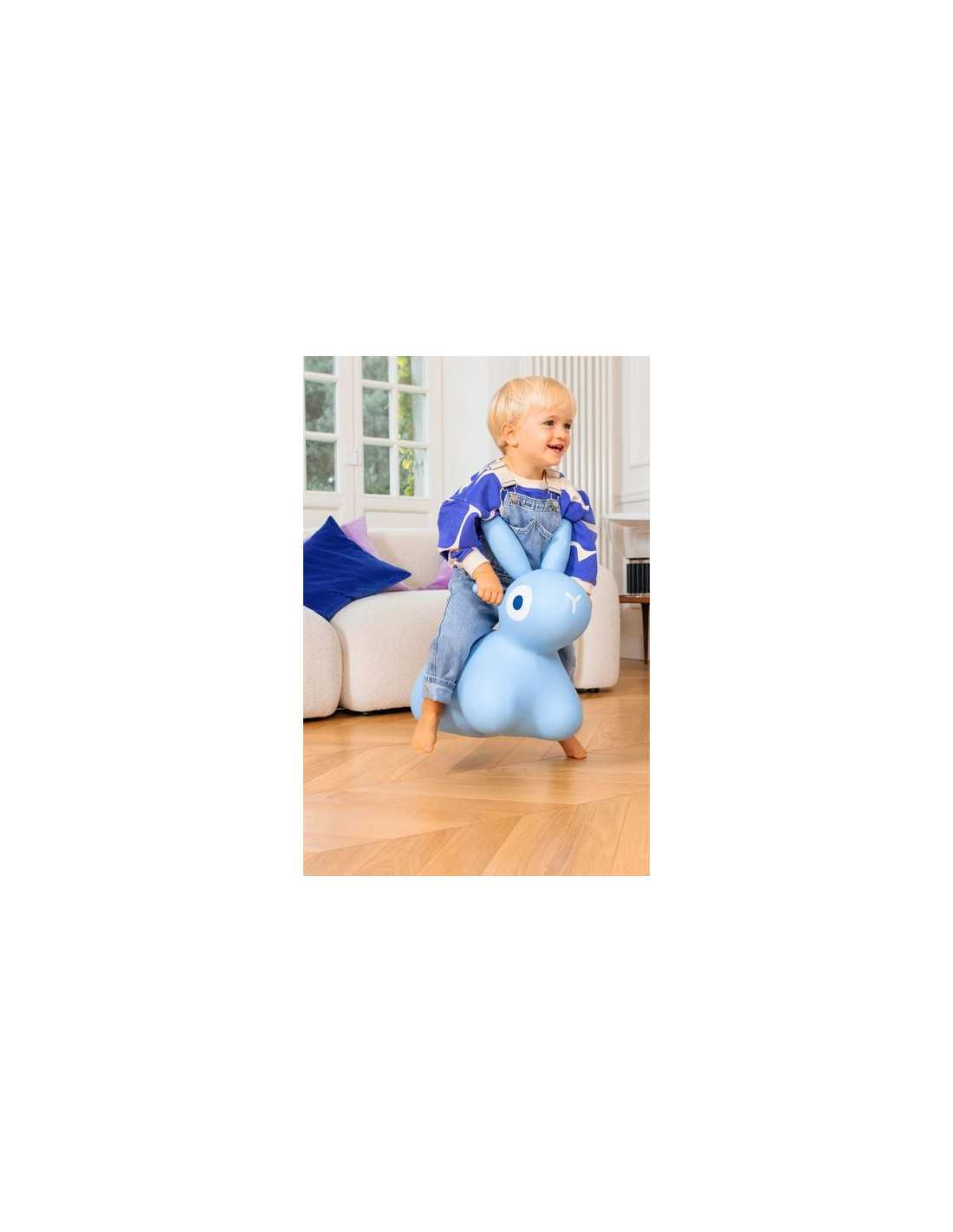 Découvrez l'animal sauteur lapin Hoppi bleu de Quut, un animal rebondissant en forme de lapin, un cadeau idéal pour les enfants dès 18 mois pour jouer en intérieur comme en extérieur. Ergonomique et ludique, l'animal sauteur contribue à développer l'éveil chez les petits, leur sens de l'équilibre et leur motricité tout en s'amusant avec ce ballon sauteur.