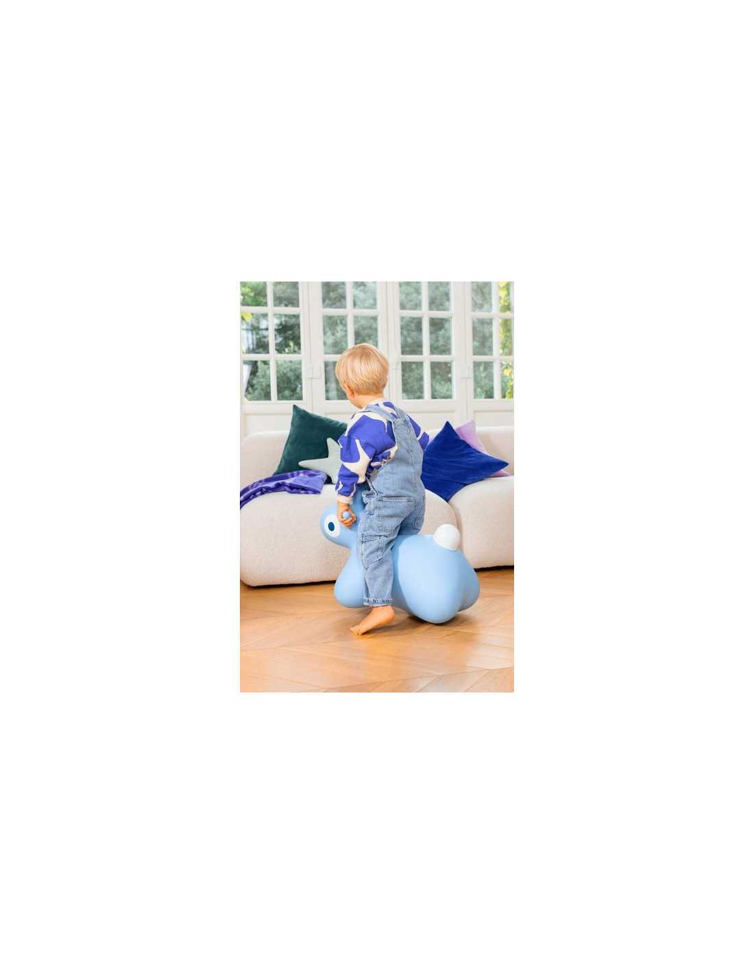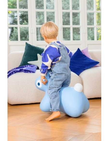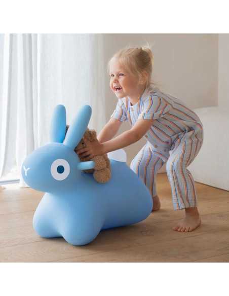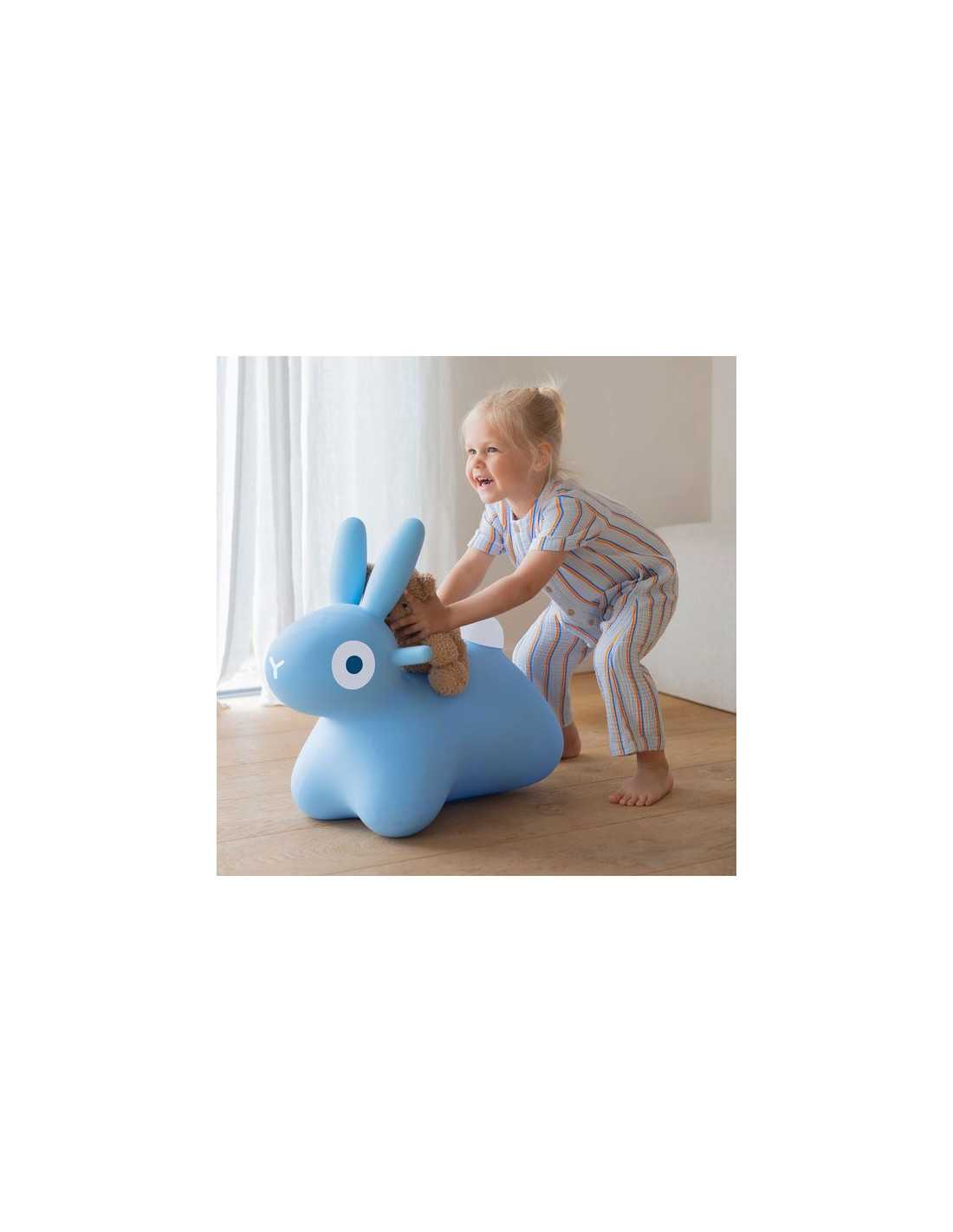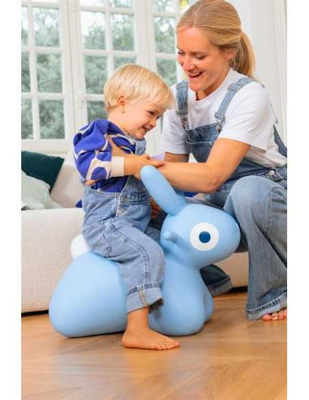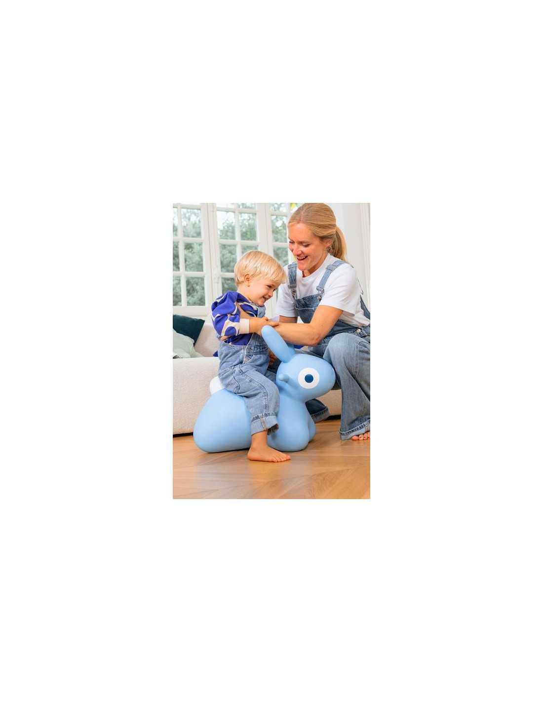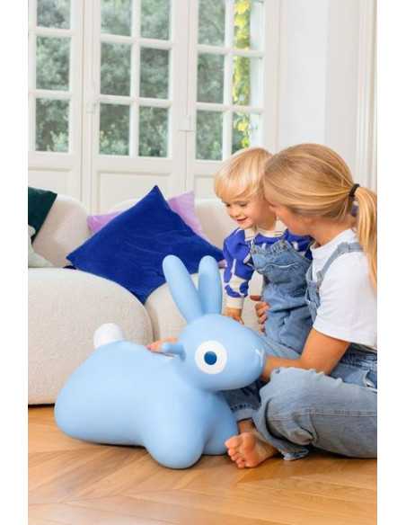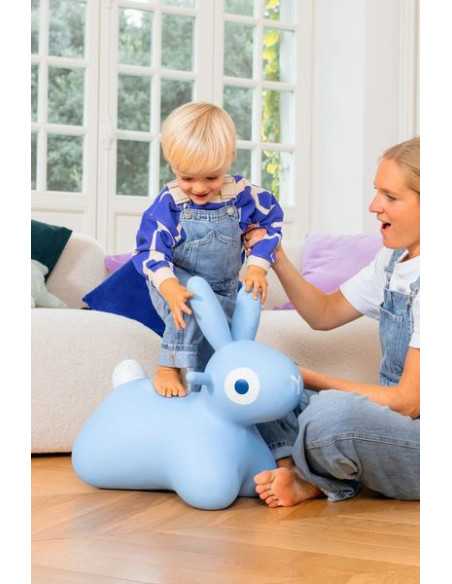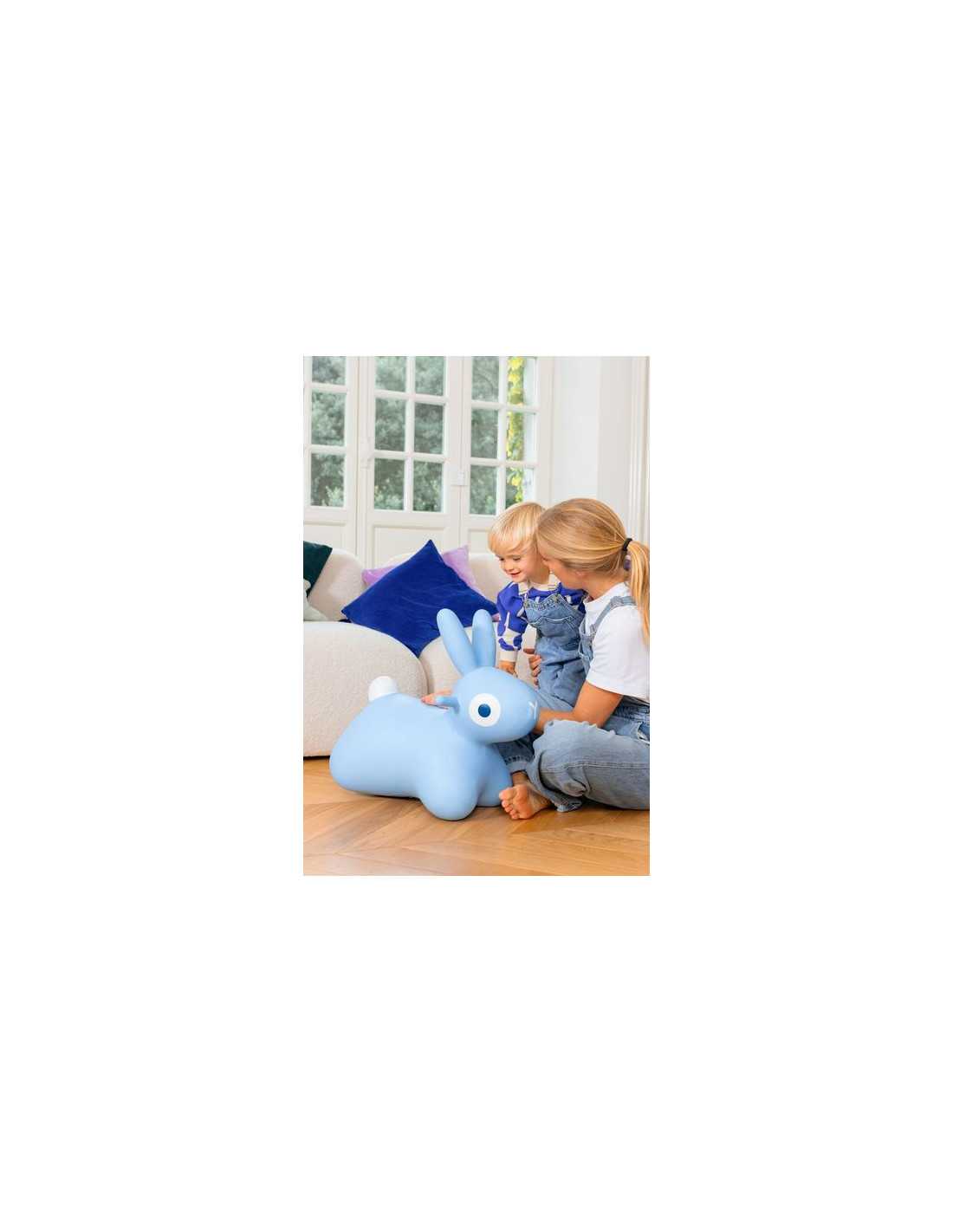 Découvrez l'animal sauteur lapin Hoppi bleu de Quut, un animal rebondissant en forme de lapin, un cadeau idéal pour les enfants dès 18 mois pour jouer en intérieur comme en extérieur. Ergonomique et ludique, l'animal sauteur contribue à développer l'éveil chez les petits, leur sens de l'équilibre et leur motricité tout en s'amusant avec ce ballon sauteur.